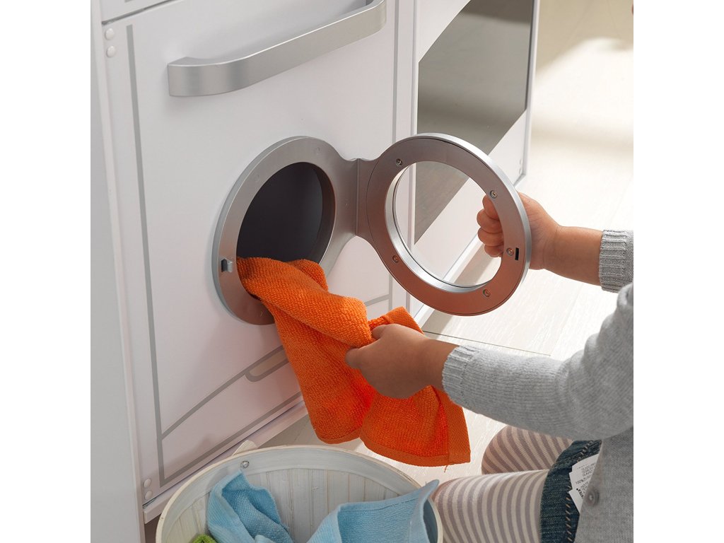 Velká dětská hrací kuchyňka se světly a zvuky je ideální hračkou pro děti, které milují vaření s mámou a tátou. Obsahuje zábavný výrobník ledu, který má realistické zvuky s blikajícími světly. Kuchyňka má realistické akrylové hořáky a mikrovlnnou troubou, otáčecí kohoutky a mnoho dalších nápaditých prvků. Hlavní vlastnosti: výrobník ledu má světlo a zvuk pracovní deska ve stylu žuly vyžaduje baterie 3x LR44 / AG13 knoflíky se zvukem dřez s baterií a kohoutky lednice, mrazák, mikrovlnná trouba, trouba a myčka, vše s otevíratelnými dvířky praktický úložný prostor pod dřezem kuchyňka je natolik velká, že si s ní mohou hrát i více děti najednou materiál MDF, masivní dřevo, plast přibalen podrobný, krok za krokem obrázkový návod k sestavení