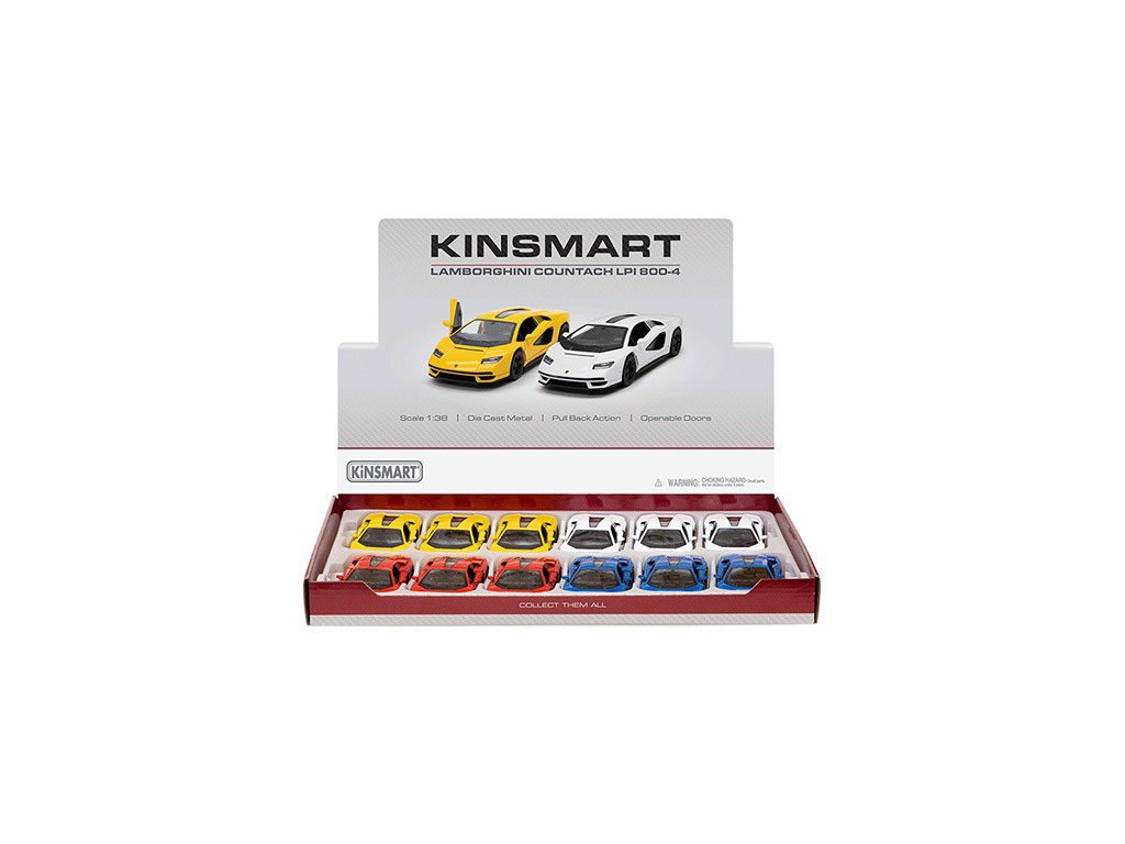 KINSMART KT5437: Lamborghini Countach LPI 800-4 - Věrný kovový model auta (detailní kopie) z kovu a plastu, zpětný chod, 4 barvy. Má otevírací dveře (dvířka jdou otevírat). Auto vyrobeno tlakovým litím z kovové slitiny v kombinaci s plastovými díly.