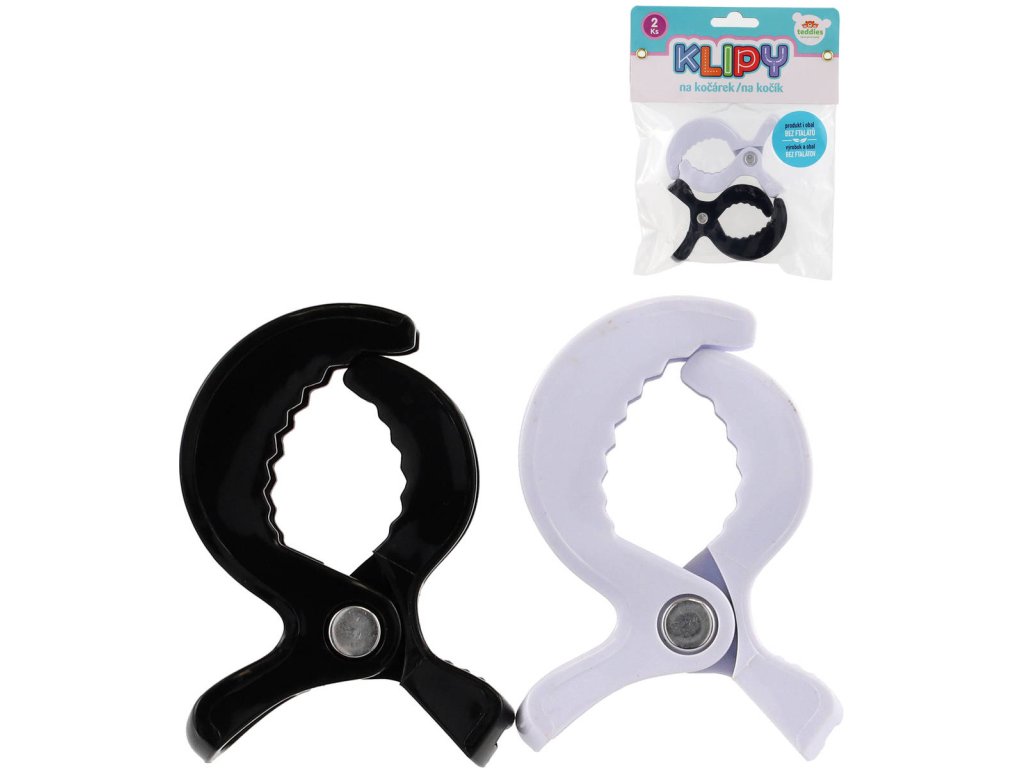 Klipy na kočárek černý + bílý set 2ks plast v sáčku