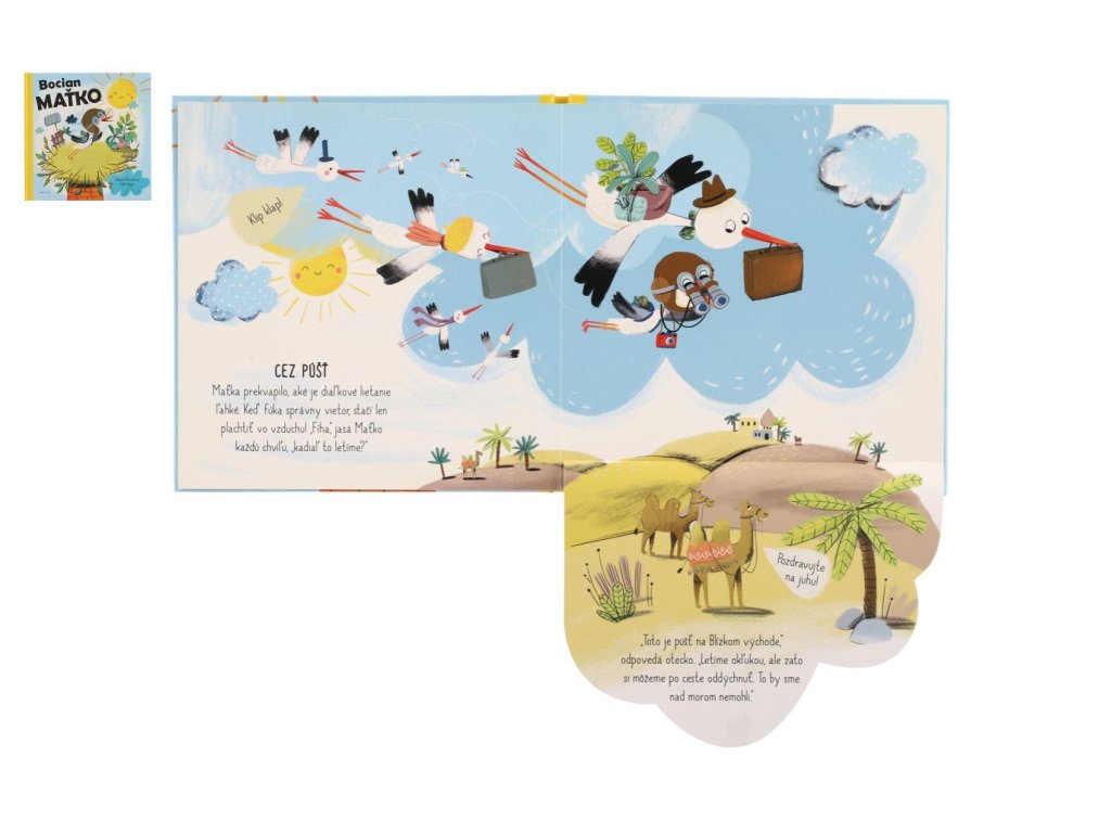 Letné dni sa začali pozvoľna krátiť a malý bocian Maťko, ktorý sa sotva naučil trochu lietať, zvedavo pozoruje, ako sa jeho rodičia, ďalší príbuzní a všetci bocianí susedia pripravujú na ďalekú cestu. Kam majú namierené? To Maťko na začiatku príbehu vôbec netuší. Počas čítania budete nielen pozorovať dlhú bocianiu cestu do teplých krajín, ale dozviete sa aj to, prečo niektoré vtáky na zimu odlietajú. Na každej dvojstrane na vás čakajú malé záhady, ktoré odhalíte pomocou odklápacích okienok!