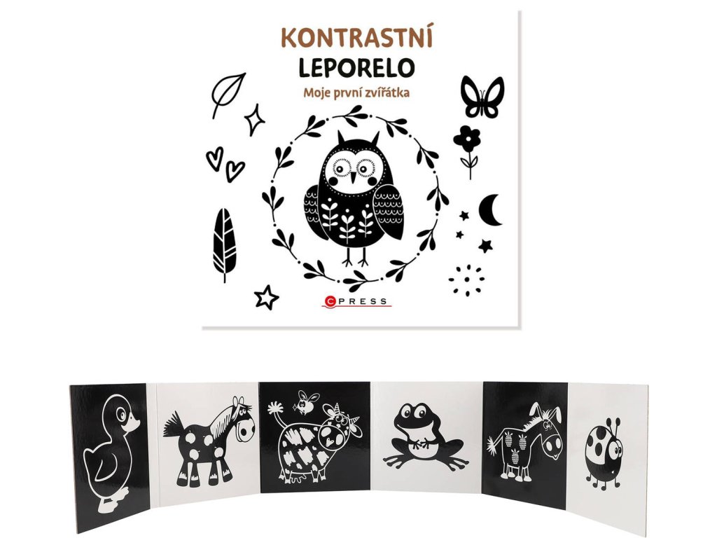 Rozvíjejte u svého miminka vnímání a lásku ke knihám už od prvních týdnů života. Děti těsně po narození vnímají zejména ostré kontrasty světlých a tmavých ploch, které upoutají jejich pozornost. Proto je toto leporelo vhodné už od prvních týdnů života vašeho miminka. Střídající se kontrastní tvary a roztomilé ilustrace v severském stylu děti zaujmou a později se na nich mohou učit poznávat jednotlivé věci. Praktický tvar harmoniky umožňuje knížku rozložit a postavit před děťátko, i když zatím není schopno samostatného listování. Vhodné pro děti od narození.