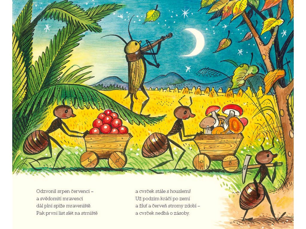 Knížka pro děti - Cvrček a mravenci - s básničkami a pěknými ilustracemi.