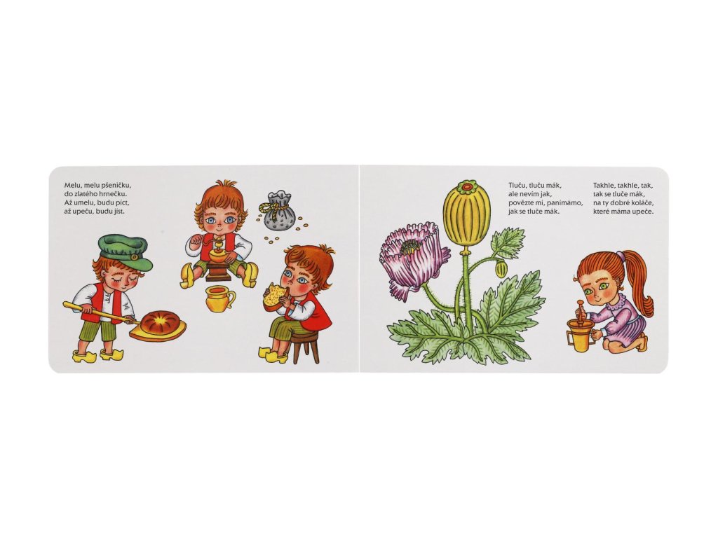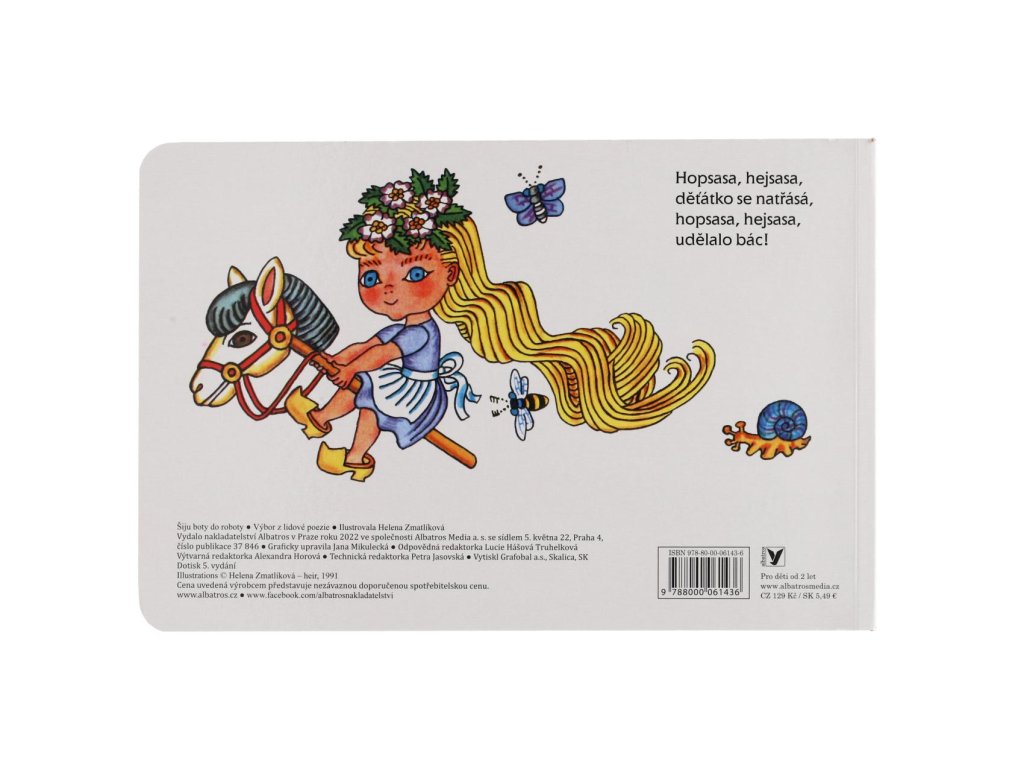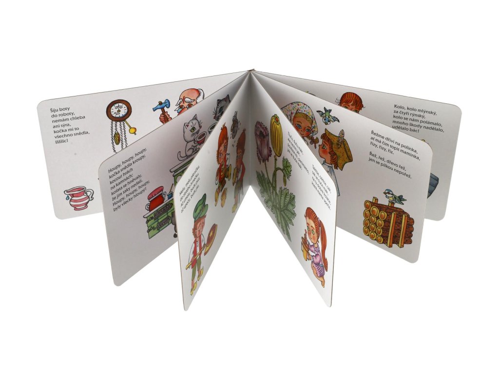 Leporelo oblíbených lidových říkadel pro nejmenší s působivými obrázky Heleny Zmatlíkové jistě potěší malé i velké. Určitě si rádi připomenete a své děti naučíte Kolo, kolo mlýnský nebo Šiju boty do roboty. Výrazná rytmická říkadla jsou snadno zapamatovatelná a dítě si bude při jejich opakování rozvíjet paměť i slovní zásobu.