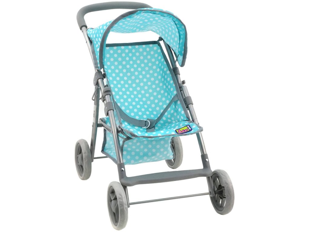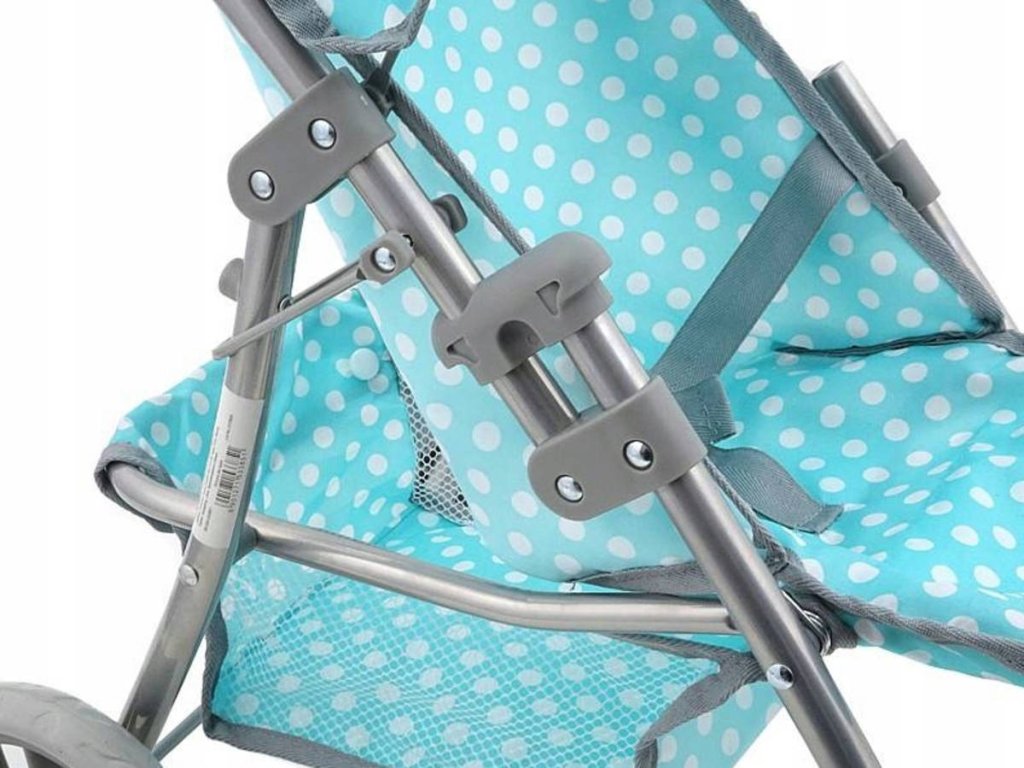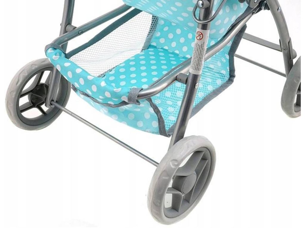 Kočárek golfky pro panenky na procházku do parku, na zahradu nebo na nákupy s maminkou. Mátově zelenomodré provedení s bílými puntíky. Baleno v krabici. Kočárek si sestavíte sami. Montáž je velmi jednoduchá a rychlá. Vyrobeno z vysoce kvalitního plastu, kovu a látky.
