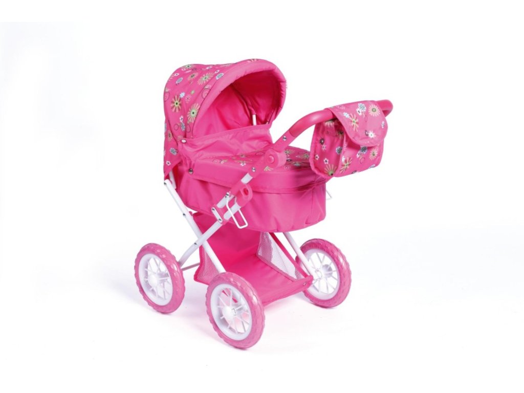 Kočárek pro panenky obsahuje úložný protor vespod kočárku a tašku na nezbytnosti pro malé maminky.