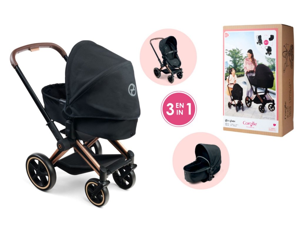 Kočárek Cybex Black pro panenky byl vyvinut společně s firmou Cybex podle originálního kočárku Cybex Priam, aby se matka a dítě mohly procházet se stejným kočárkem. Skládací kočárek 3v1 pro panenky o velikosti 36-52 cm je univerzální a lze jej použít také jako dětskou postýlku pro přepravu. Má nastavitelnou stříšku, odnímatelný ochranný kryt, robustní koš a lze lehce sklopit a složit. Rozměry (DxŠ) 60 x 36,5 cm. Výška rukojeti 64,5 cm.