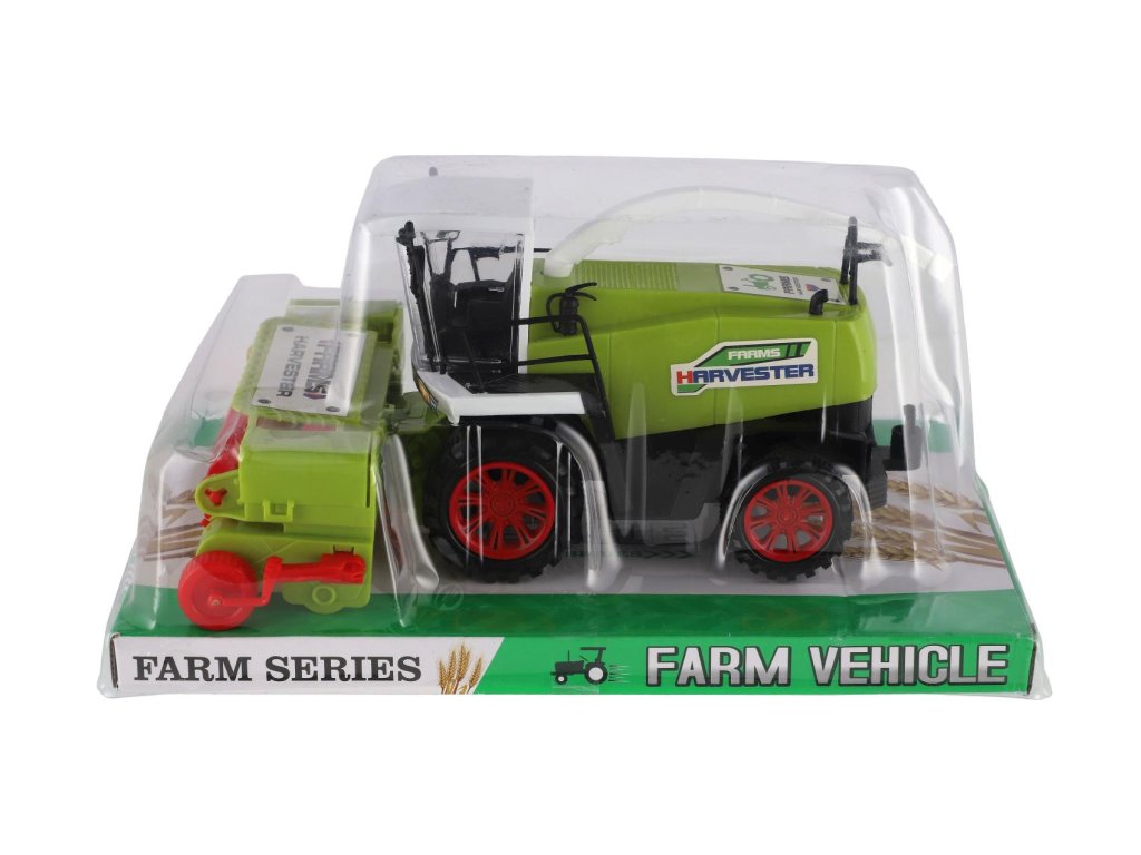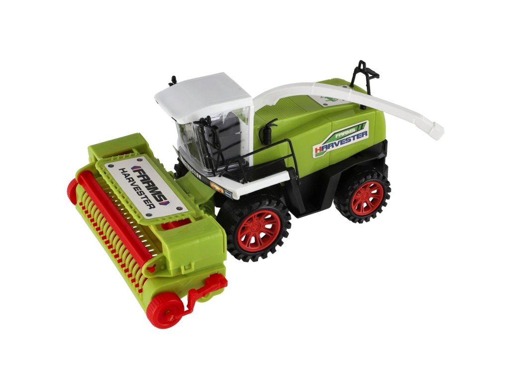 Pro každého malého zemědělce je nepostradatelným, všestranným pomocníkem kombajn. Kombajn je na setrvačník a je velikosti 24 cm. Nekonečná práce na farmě může začít. Stroj disponuje bočním ramenem na výsyp.