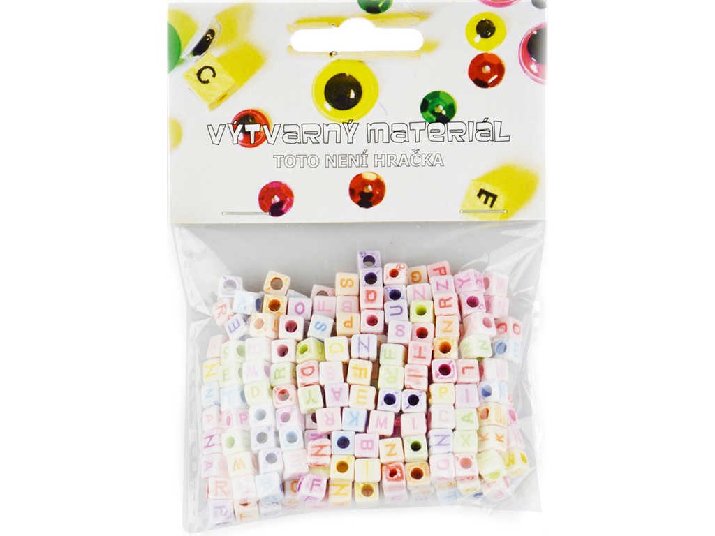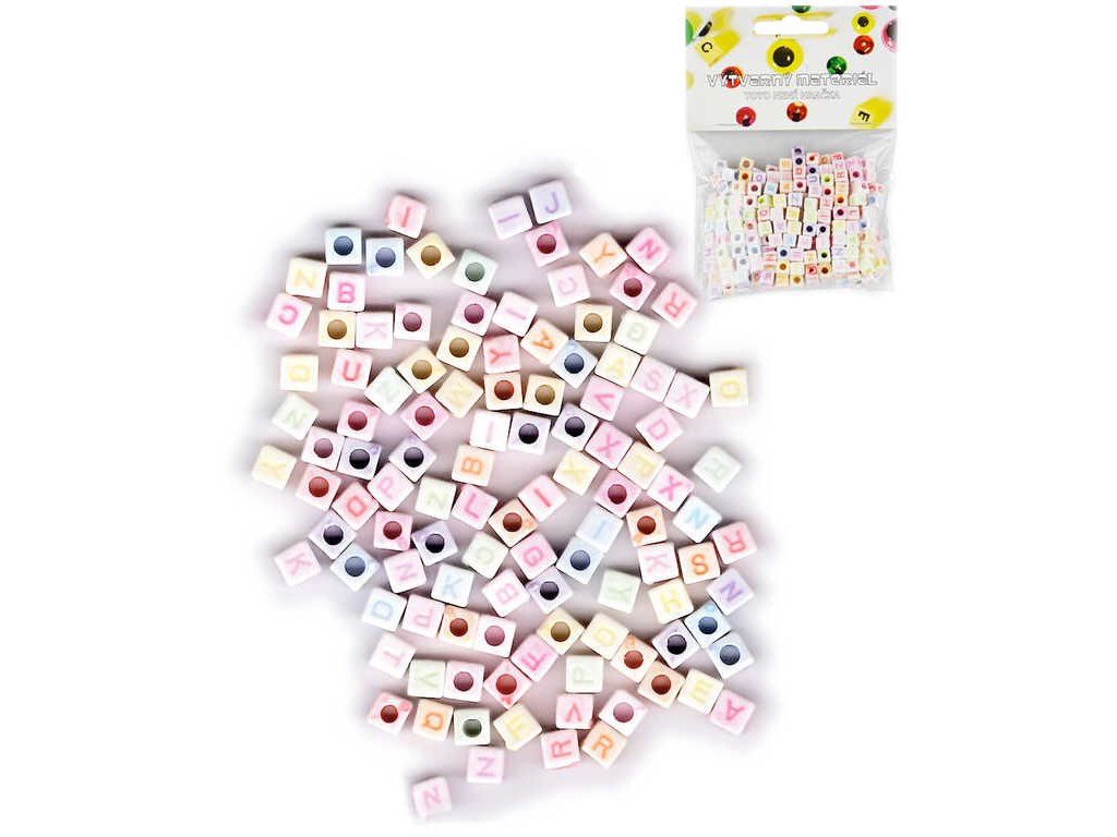 Korálky navlékací abeceda set 300ks plastové kostičky 6mm v sáčku