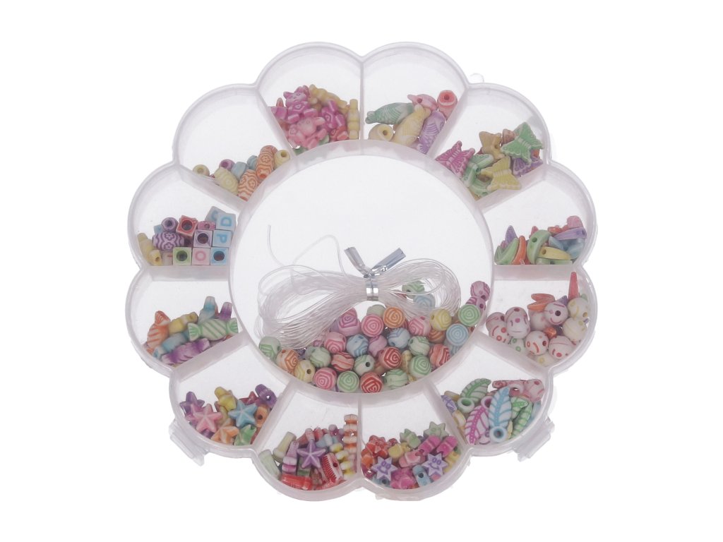 Korálkový set o hmotnosti 80g ve tvaru květiny. 13 různých druhů