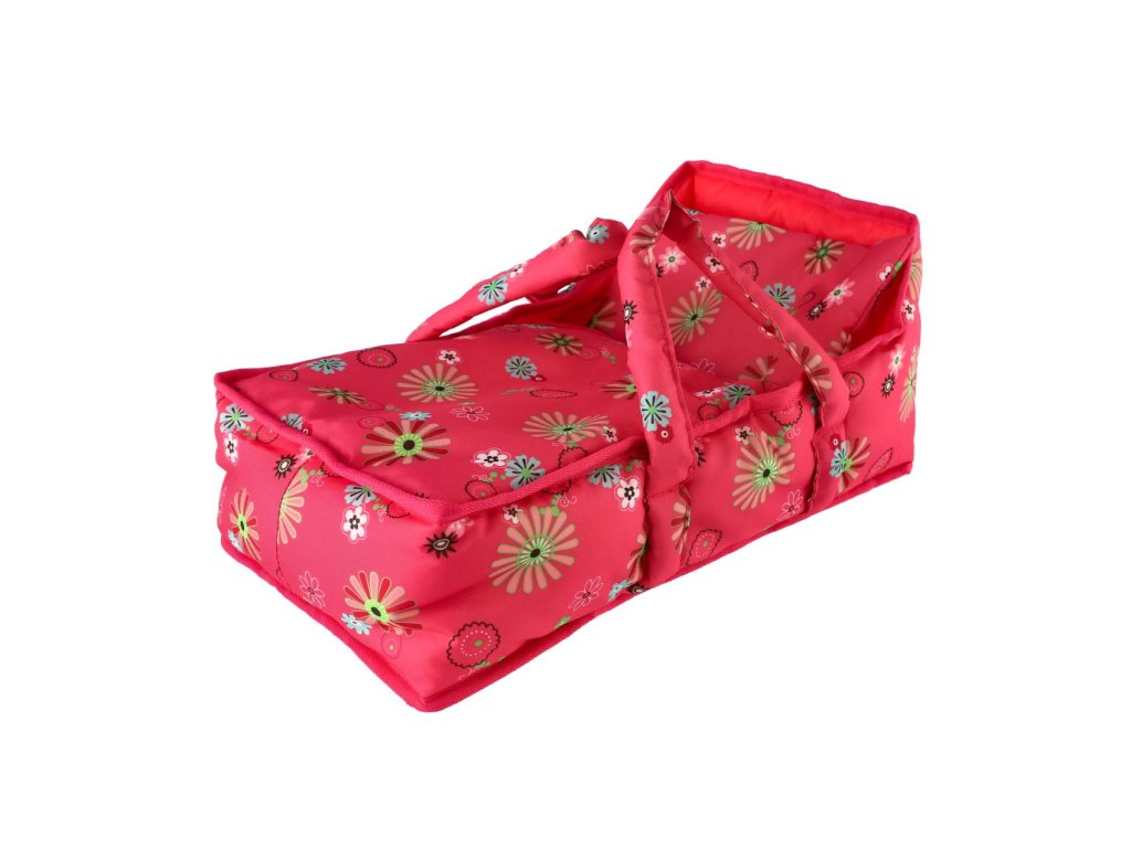 Korbička přenosná pro panenky látka 21x40x18cm v sáčku