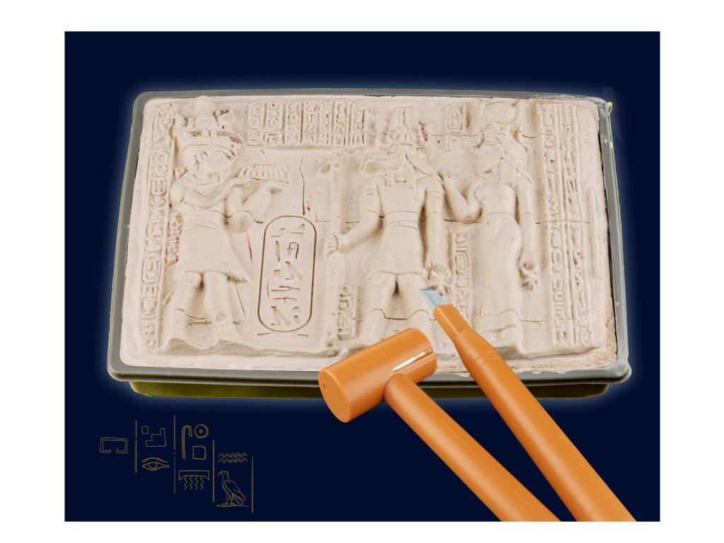 KOSMOS Egyptské vykopávky. Doporučený věk 7-11 let. Obsahuje majzlík a kladívko na odkrytí vykopávek v sádře. Český návod ke stáhnutí v digitální podobě-QR kód na krabici a v návodu.