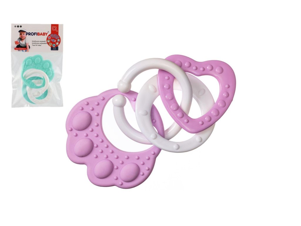 Kousátko medvědí tlapka s přívěsky silikon 2 barvy v sáčku 11x16cm 0m+