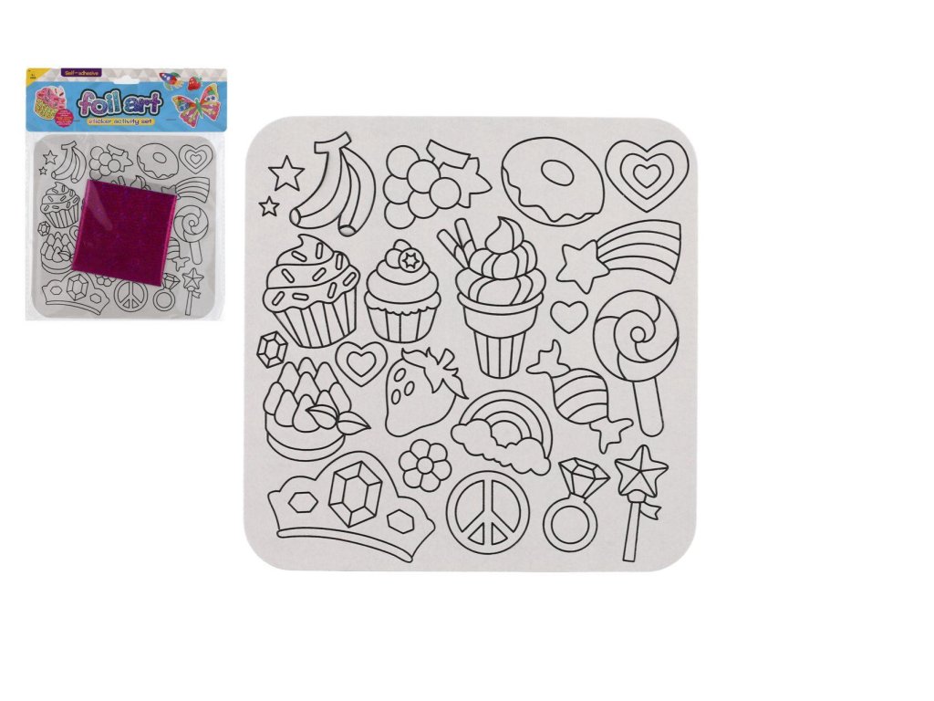 Se sadou si mohou děti ozdobit obrázky za pomocí nálepek a fólií. Z vybraného motivu sloupnete chráníci kryt a na lepící stranu aplikujete vybranou folii.