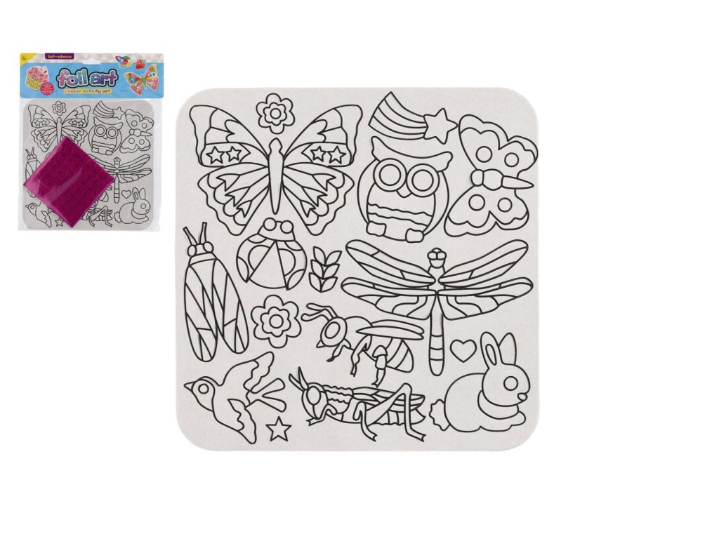 Se sadou si mohou děti ozdobit zvířátka za pomocí nálepek a fólií. Z vybraného motivu sloupnete chráníci kryt a na lepící stranu alikujete vybranou folii.