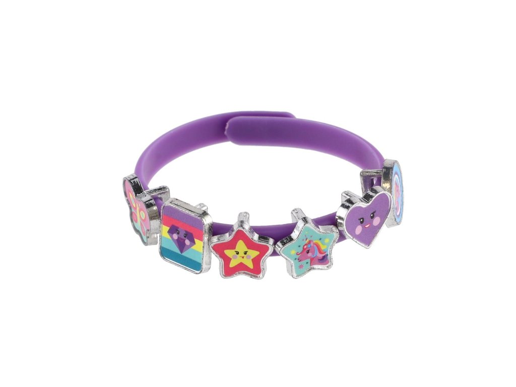 Vyrob si náramek s doplňky s motivem Jednorožce. Vše potřebné k výrobě najdeš uvnitř balení. Balení obsahuje: tři plastové náramky barvy růžové, modré,fialové a 18 různých druhů doplňků s motivem Jednorožce.