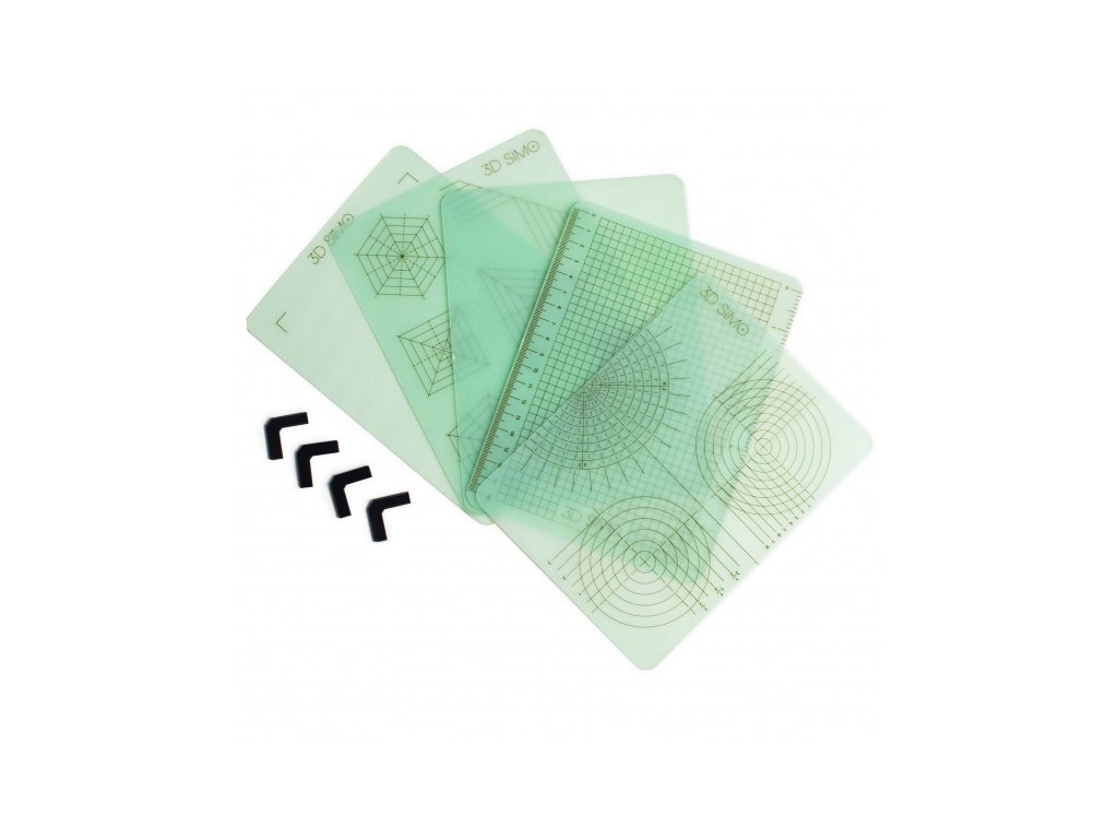 Tyto rýsovací podložky jsou vyrobeny z vysoce tepelně odolného materiálu, který je průhledný a mechanicky odolný. Tato sada obsahuje 5 různých typů podložek, které vám pomohou s kreativním 3D kreslením.Každá podložka má vlastní vzor od geometrických tvarů po přichycení papírové šablony.