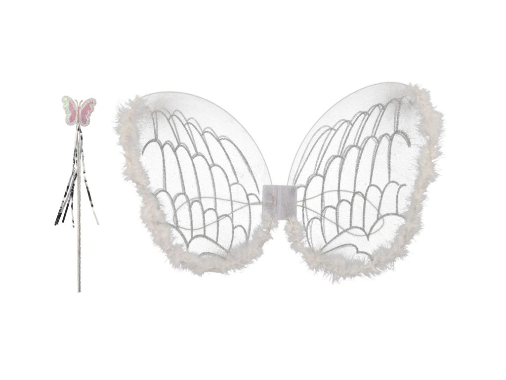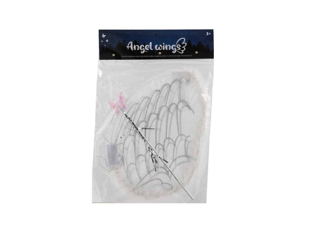Staňte se andílkem s těmito jemnými křídly! Elegantní karnevalový set obsahuje andělská křídla a sladěnou kouzelnou hůlku, které potěší každou malou vílu nebo anděla. Perfektní doplněk na karneval, focení i pohádkové hry doma.