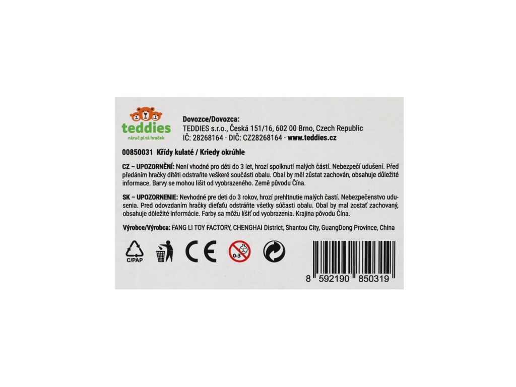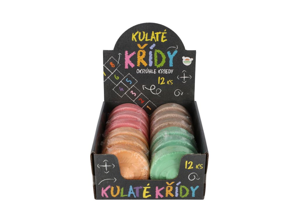 Vytvořte barevné a kreativní malby s našimi kulatými chodníkovými křídami! Křídy jsou ideální pro kreslení na chodnících, cestách nebo jiných venkovních plochách. Křídy mají kulatý tvar, což je činí pohodlné na držení a použití pro děti všech věkových kategorií. Ideální pro venkovní hry, kreativní aktivity, nebo pro zábavu při různých oslavách a akcích. Velikost 7 cm.