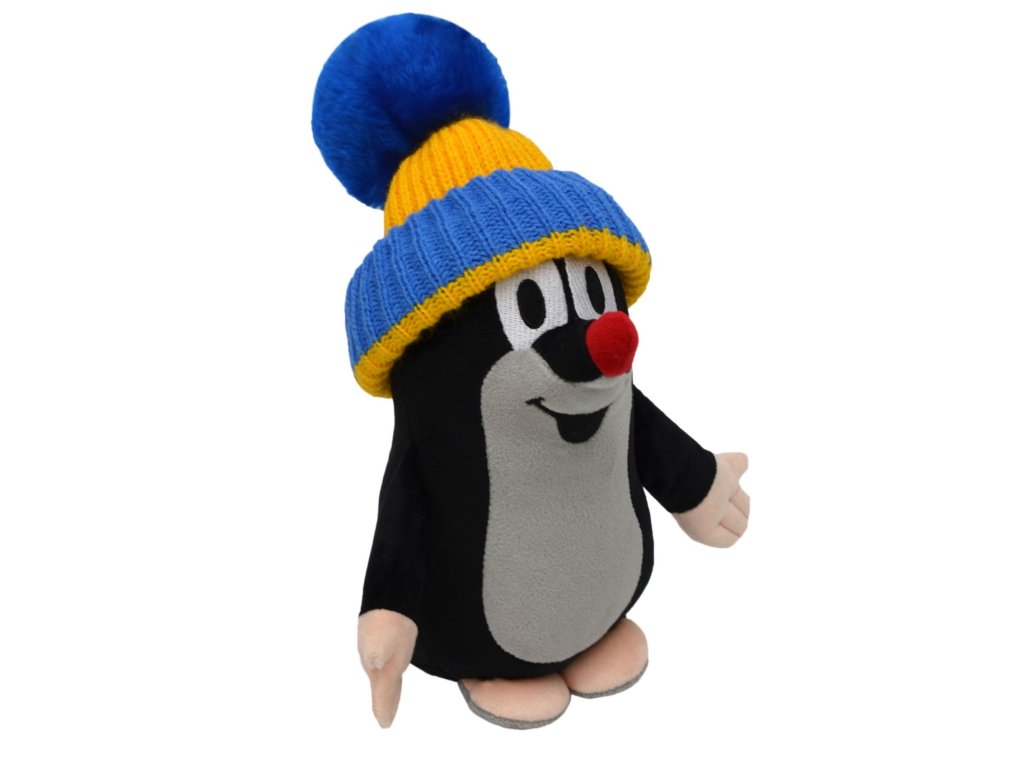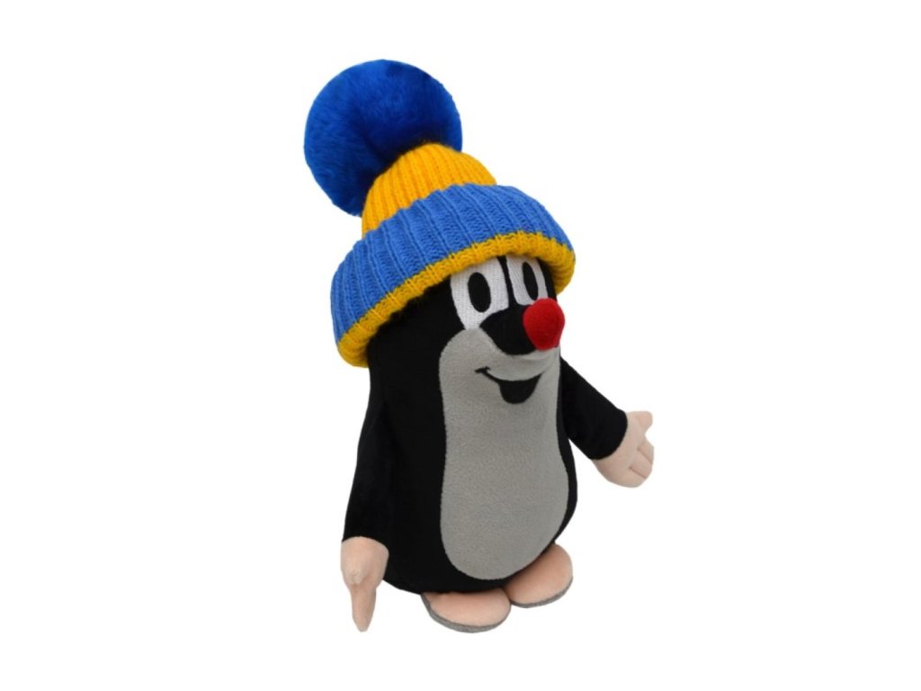 Krtek s kulichem modro-žlutým stojící 24cm v sáčku 0+
