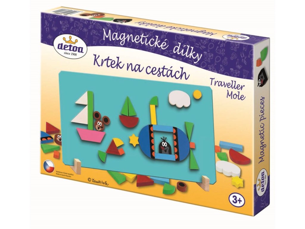 Na kovovou tabulku si děti mohou skládat nepřeberné množství obrázků s motivem Krtečka a jeho kamarádky Myšky. Výrobek podporuje zručnost a fantazii dětí. Je vhodný pro děti od 3 let.