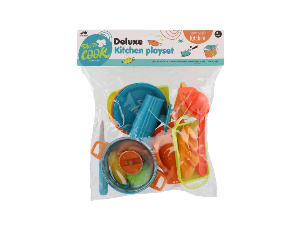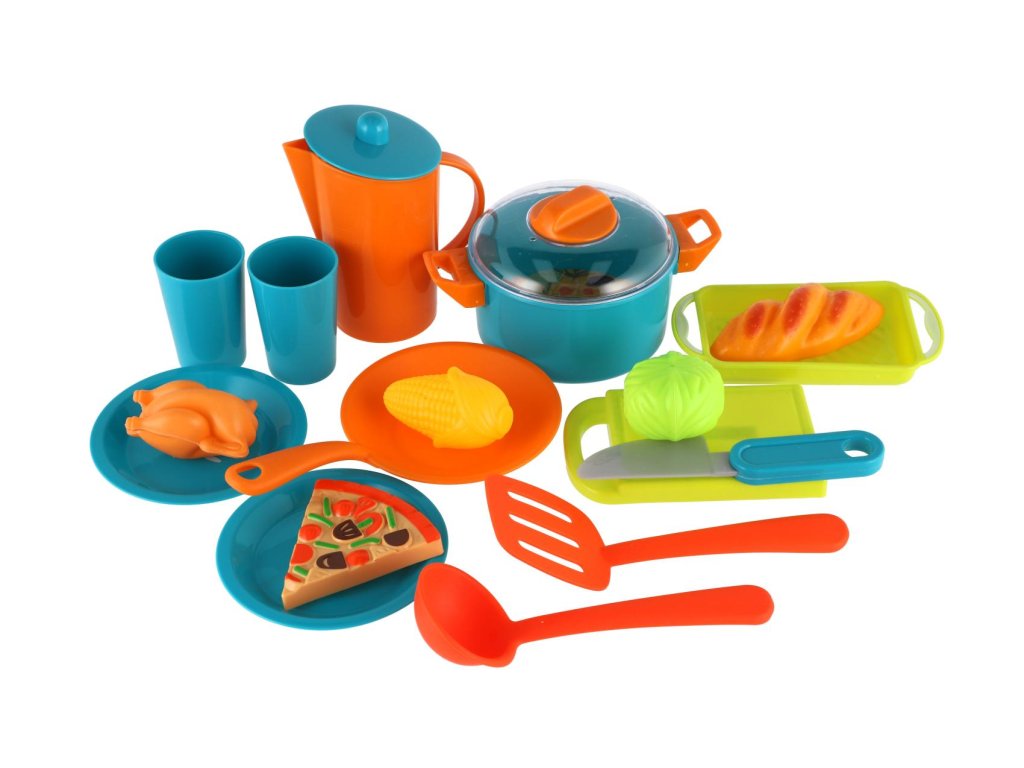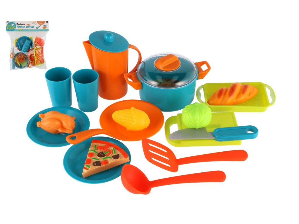Vaření jako u maminky! Tato barevná plastová kuchyňská sada obsahuje vše potřebné pro malou kuchařku nebo kuchaře – hrnce, pánvičky, pokličky i příbory. Ideální pro hru na vaření, rozvoj fantazie a nápodobu reálného světa.