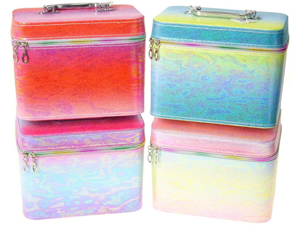 Kufřík dětský kosmetický barevný lesklý vel. L se zrcátkem na zip