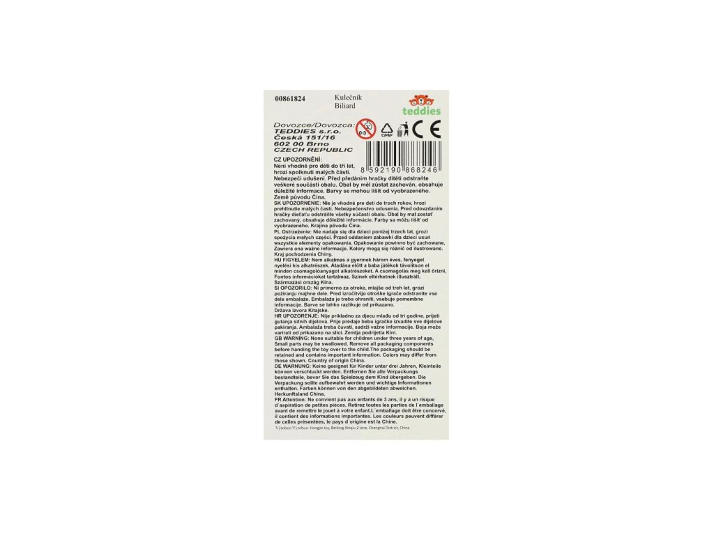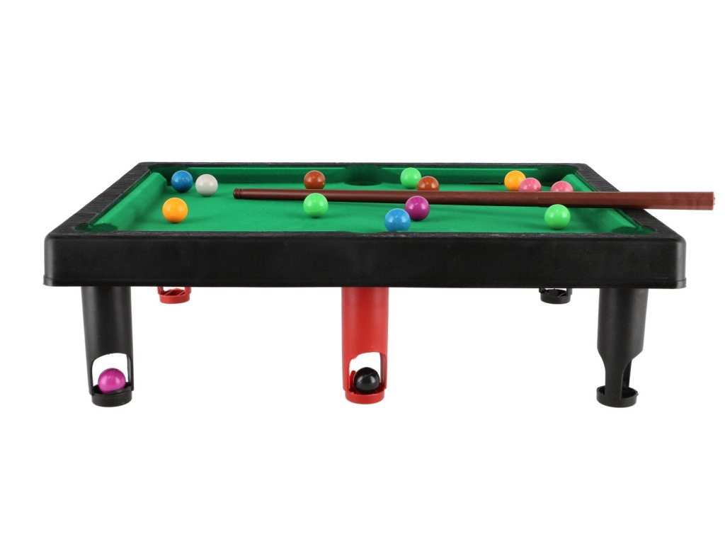 Dětský stolní kulečník je věrnou zmenšeninou klasického kulečníku. Stačí hru položit na stůl nebo jakoukoliv jinou rovnou plochu a hra může začít! Nechybí ani triangl pro srovnání koulí. Tento malý kulečníkový stůl je určen pro zábavu a trénuje motoriku a koordinaci rukou a očí. Velikost složeného kulečníku 33 x 26 x 10 cm.