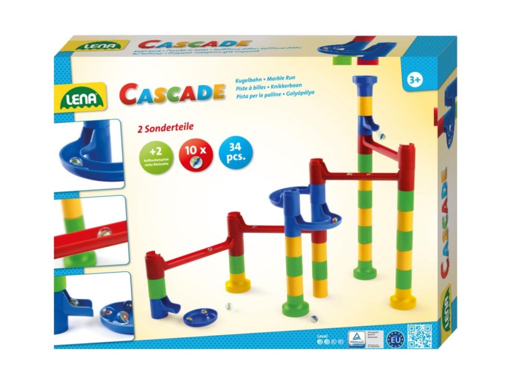 Kuličková dráha umožňuje sledovat cestu kuličky a její rychlost z horní části až dolů. Která kulička bude rychlejší a které sestavení dráhy bude zajímavější? Barevná kuličková dráha obsahuje spoustu překážek, které zvyšují napětí, zda kulička správně proběhne celou stavebnicí. Sestavit dráhu může dítě mnoha způsoby, dle vlastní fantazie. Stavebnice slouží k procvičení jemné motoriky a donutí dítě přemýšlet. Balení obsahuje 34 ks + 10 kuliček, v krabici.