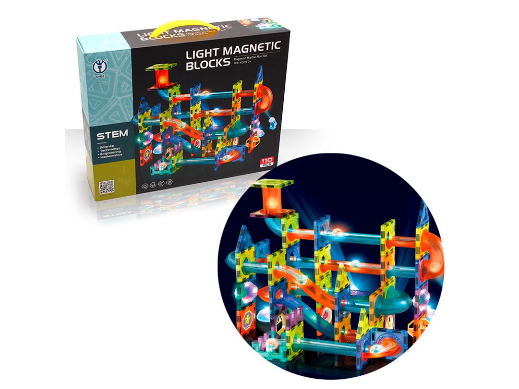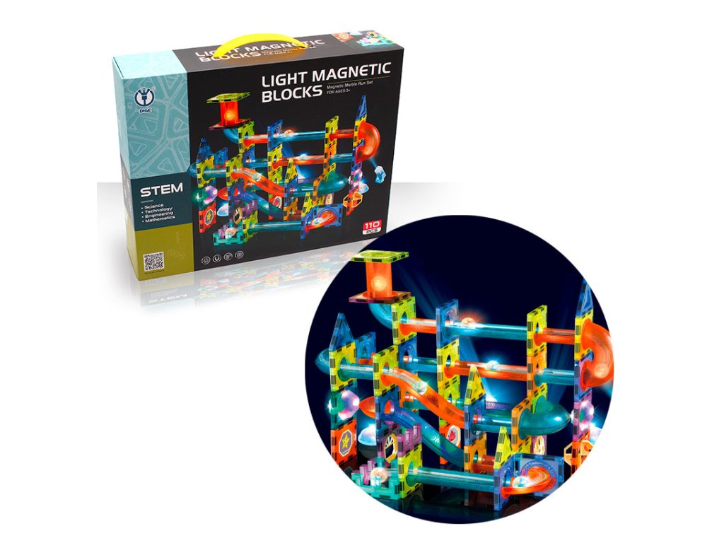 Kuličková dráha - magnetická, svítící stavebnice 110 ks