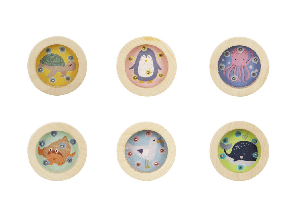 Kuličková hra. Rozměry 6x6x1,6 cm. 24 ks display box. 6 variant - želva, tučňák, chobotnice, krab, pták, velryba.