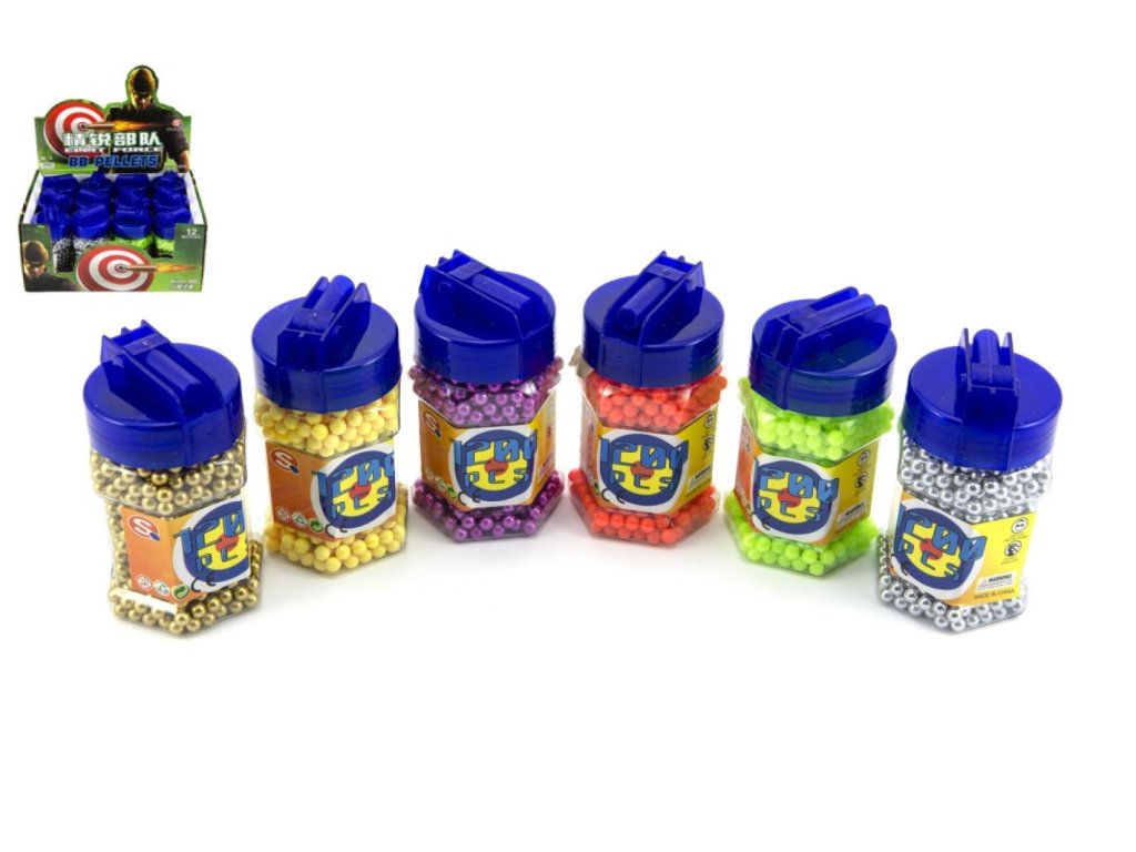 Kuličky do pistole 1200ks 6mm asst 6 barev v plastové láhvi 12ks v boxu
