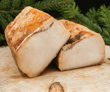 Hotový výrobek: Dobře uzený špek má na povrchu krásnou světle hnědou barvu s nazlátlým nádechem, a na řezu je bílý a měkký.