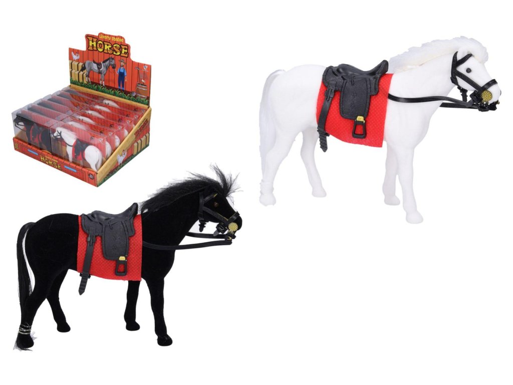 Kůň fliška se sedlem 14cm 2 barvy v plastové krabičce 14,5x12cm 12ks v boxu