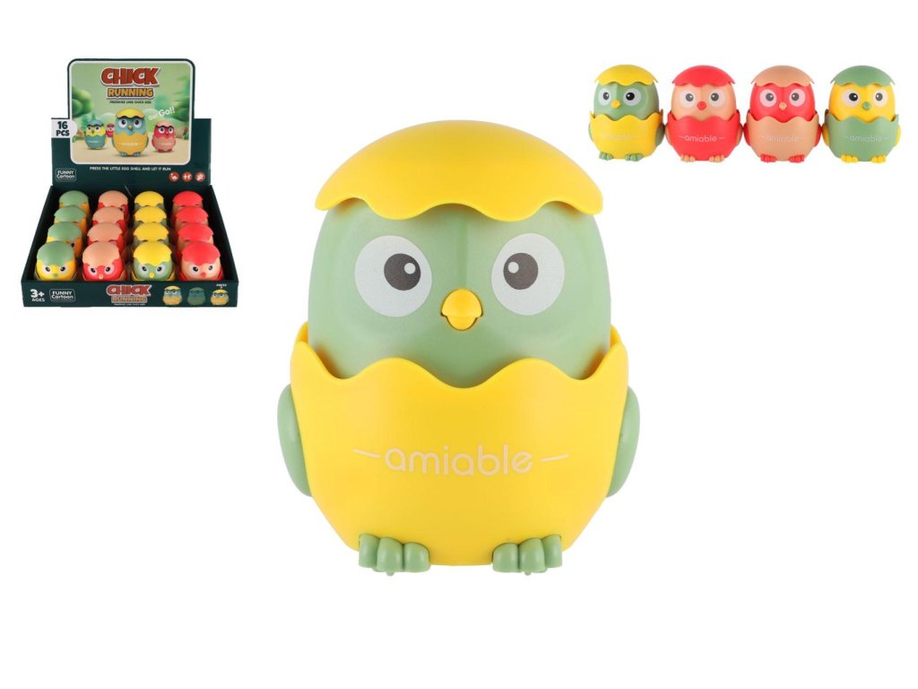 Kuřátko Zmáčkni a jeď plast 7x8cm na setrvačník 4 barvy 16 ks v boxu