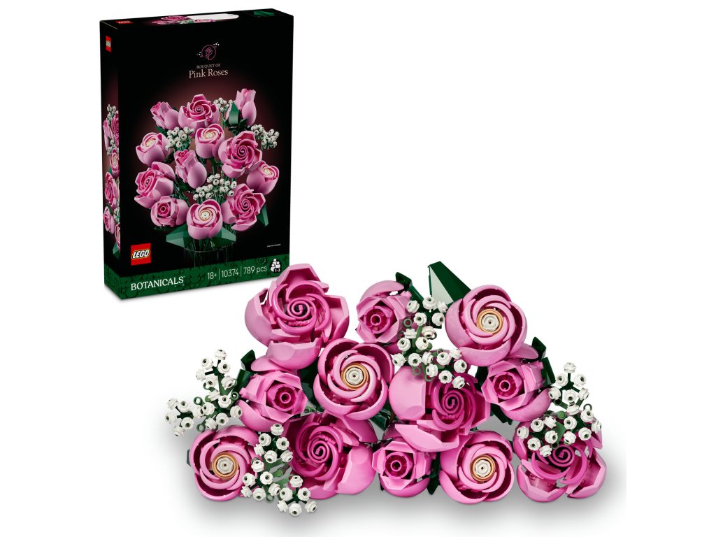 Vytvořte si elegantní květinovou dekoraci z kostek a obdivujte její detaily se stavebnicí LEGO® Botanicals (10374) Kytice růžových růží pro dospělé.