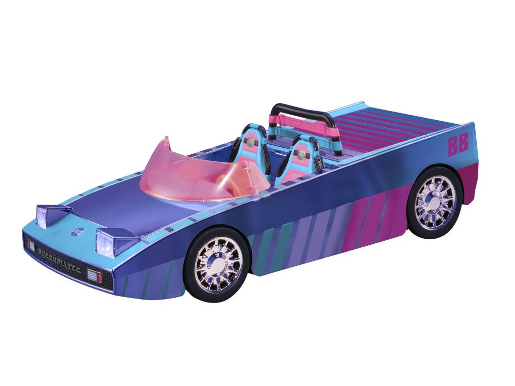 V L.O.L. Surprise! Dance Luxusním autě ve futuristickém designu s metalickým modro-fialovým povrchem můžou jezdit všechny L.O.L. panenky a OMG Velké ségry. Zadní část auta můžeš rozložit na taneční parket a bazén. Auto má fungující přední světla, která odhalí