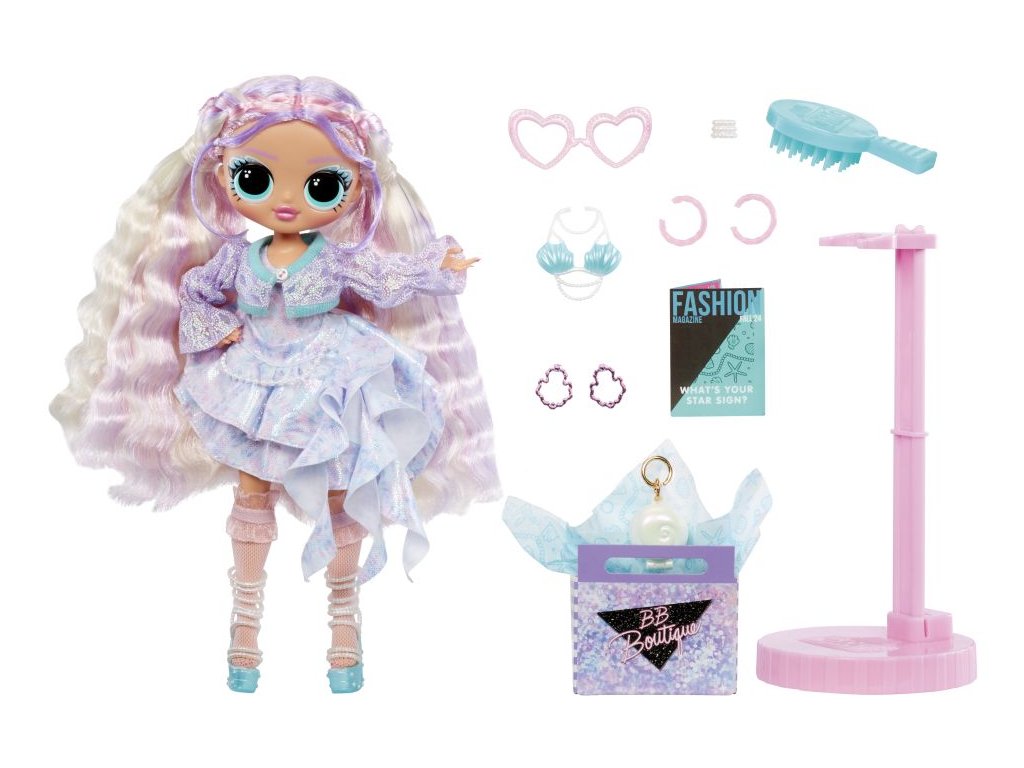 • 1 panenka OMG Velká ségra s pohyblivými klouby a česatelnými vlásky outfit, boty, doplňky, které fungují