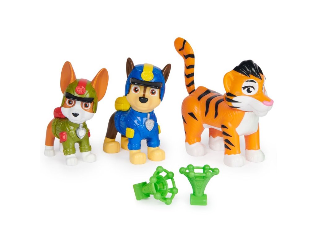 Vytvořte si vlastní Tlapkovou patrolu: Dobrodružství Tlapek z džungle s Chasem a Trackerem a jejich tygřím kamarádem! Chase, Tracker a tygr měří přes 5 cm a vypadají stejně jako v seriálu! Až přijde čas na vzrušující záchrannou akci, připevněte síťový projektil k tygřímu ocasu a natáhněte ocas do správné polohy. Pak stiskněte tlačítko pro vystřelení a zachraňte situaci! Použijte svou představivost a sehrajte své oblíbené epizody z Tlapkové patroly: Tlapky z džungle nebo vytvořte zcela nové mise! Pro ještě zábavnější a vzrušující mise inspirované seriálem Tlapková patrola posbírejte všechny hračky Tlapková patrola Tlapky z džungle a hračky Tlapková patrola ve velkofilmu, jako jsou úžasné velitelství letadlové lodi a všechny speciální edice hraček Tlapkové patroly pro dívky a chlapce, jako jsou Mocné tlapky, Vodní tlapky a hrací sady a figurky velká vozidla (každé se prodává zvlášť). S předškolními hračkami Tlapkové patroly může dítě zapojit svou představivost a rozvíjet své motorické dovednosti hraním si, zatímco prožívají oblíbené momenty ze seriálů. Užijte si nekonečná tlapkózní dobrodružství se sadou figurek Chase, Trackera a Tygra z džungle!