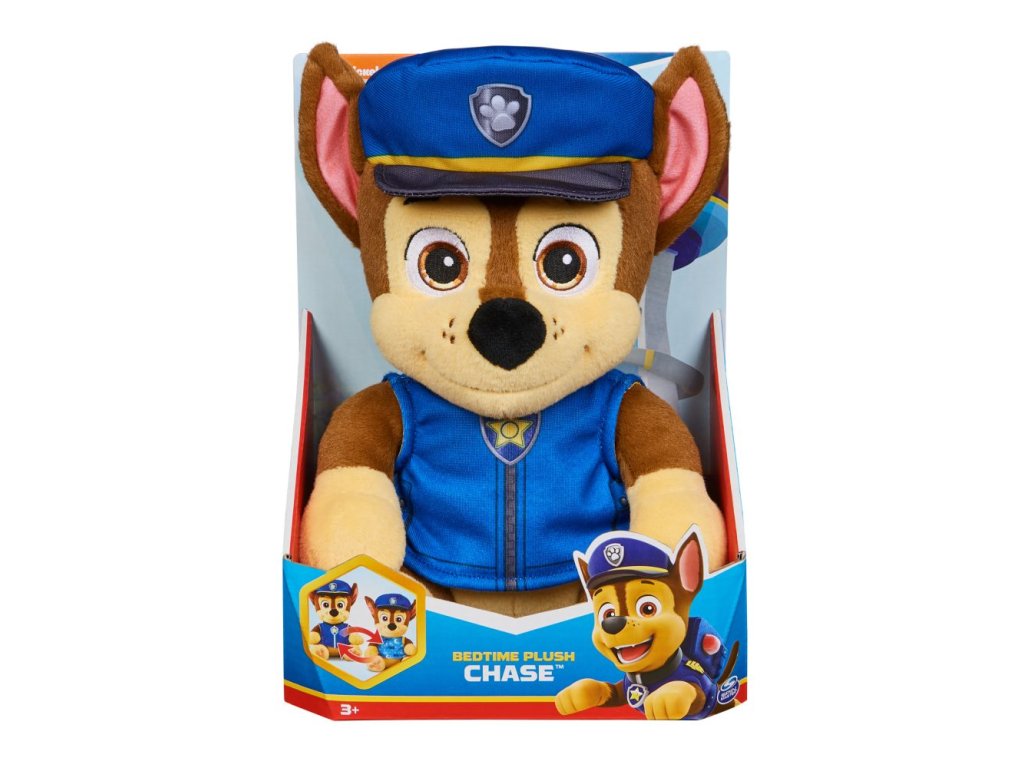 Velký plyšák pro nejmenší fanoušky Tlapkové patroly se dá převléknout z uniformy do pyžama. Provedení Chase a Skye.