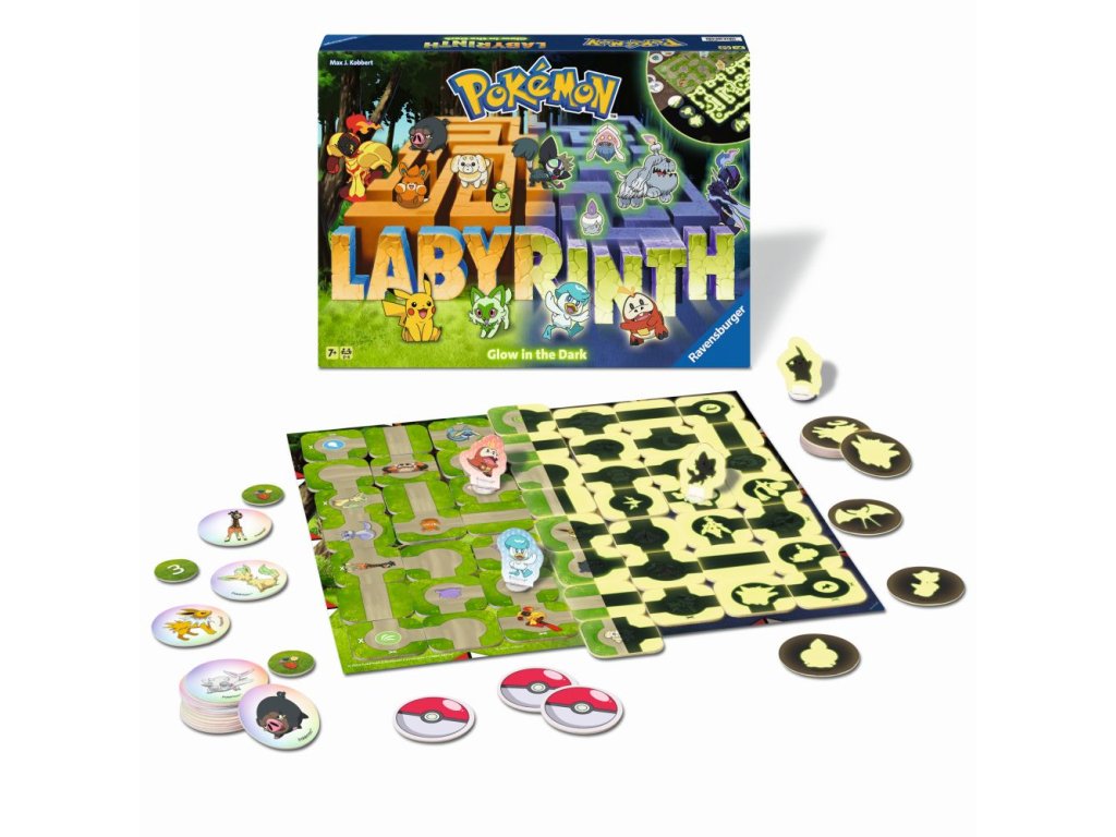 "„Labyrinth Pokémon “ – Klasická hra s kouzelnou hrací deskou a oblíbenými Pokémony! Nyní můžete hrát i v úplné tmě! Dvě hry v jedné: Zahrajte si oblíbenou hru v labyrintu za světla, nebo pátrejte po svítícím duchu Pokémona ve tmě!