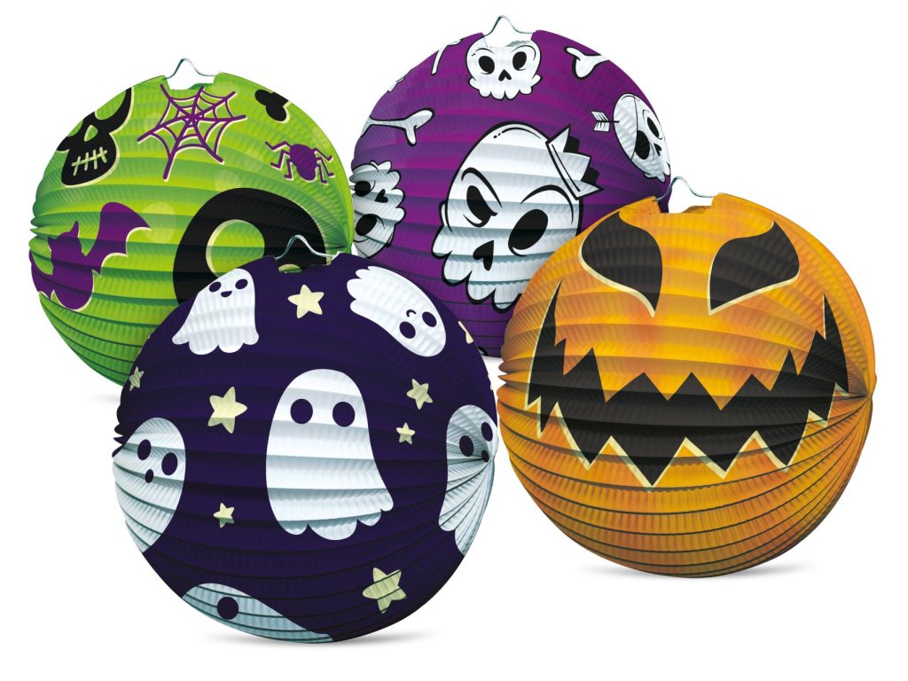 Lampion koule Halloween papír průměr 25cm v sáčku (bez hůlky) 4 druhy karneval