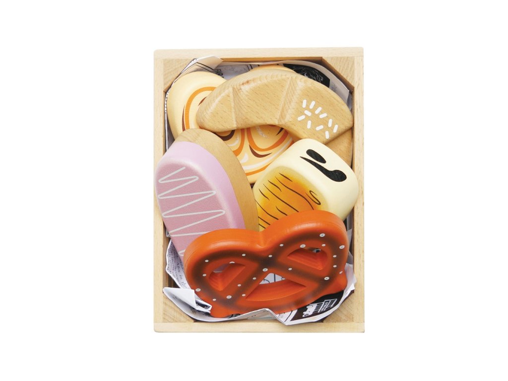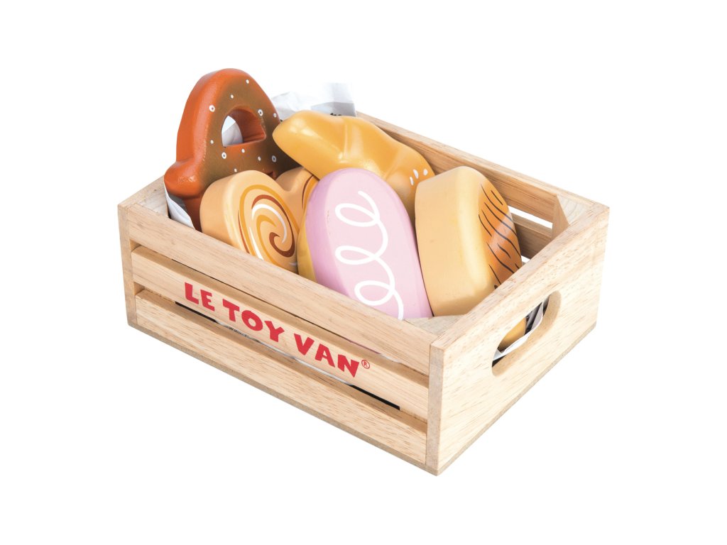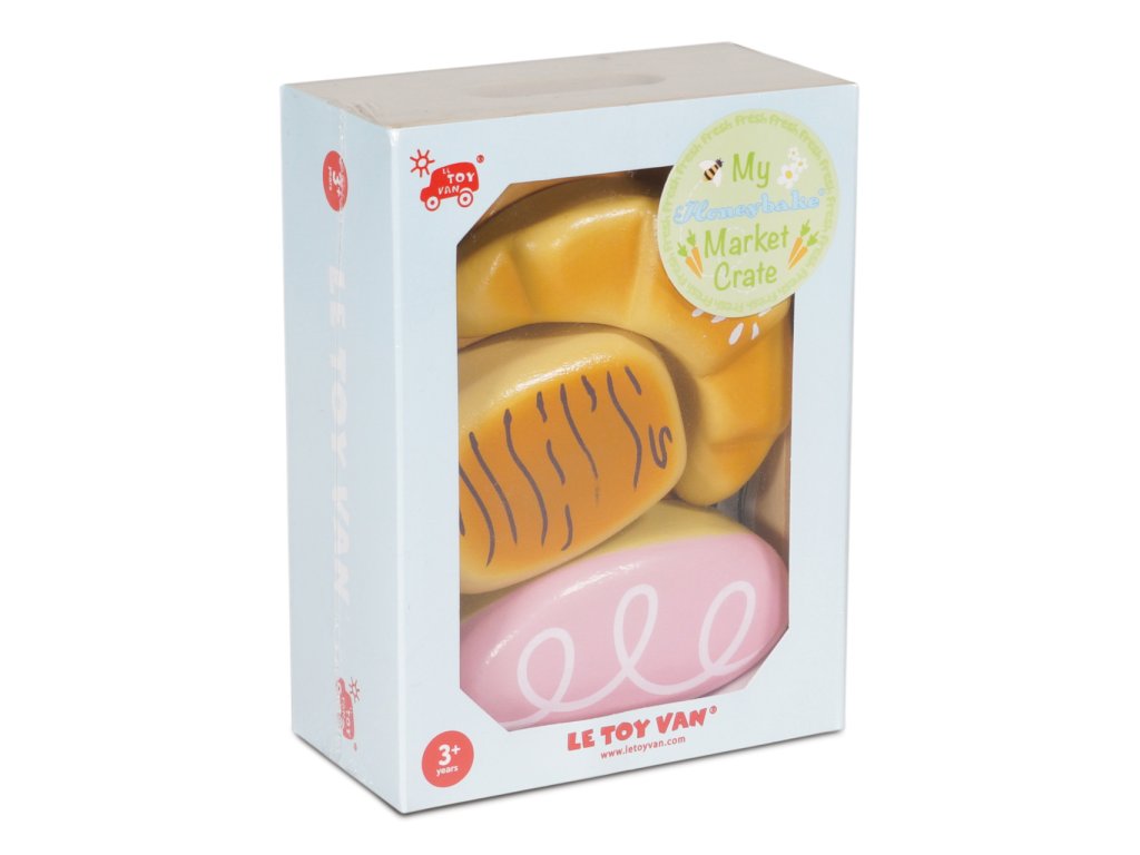 Bedýnka s pečivem je perfektní pro hru na role. Najdete v ní preclík, sladké pečivo s polevou, croissant, čokorolku a skořicové pečivo. Děti se díky hračce naučí o rozdílných potravinách a důležitosti vyvážené stravy. Vyrobeno z pevného a udržitelného dřeva, malováno netoxickými barvami, velikost tak akorát pro malé dětské ruce. Hračka pomůže při rozvoji koordinace a jemné motoriky. Ideální doplněk dětských prodejních stánků a kuchyněk. Hračky s účelemVšechny hračky firmy Le Toy Van jsou vyrobeny s cílem – aby dlouho vydržely. Designovány s láskou zkušenými řemeslníky za použití etických praktik a udržitelných materiálů, které jsou laskavější k naší planetě. Hlavní vlastnosti: vyrobeno eticky z udržitelného dřevatestováno dle nejpřísnějších standardůmalováno netoxickými barvami na bázi vodyinspiruje k představivé hřerozvíjí kognitivní dovednosti Honeybake kolekce: Hračky v této kolekci jsou vhodné k objevování, pomohou dětem s rozvojem představivosti, sociálních a verbálních dovedností a kognitivních funkcí. Tradiční design s moderními detaily děti jistě bude bavit. Honeybake je kolekce Le Toy Van, která vyhrála nejvíce ocenění, a to za design, kvalitu, bezpečnost a také za vzdělávací a herní hodnotu.