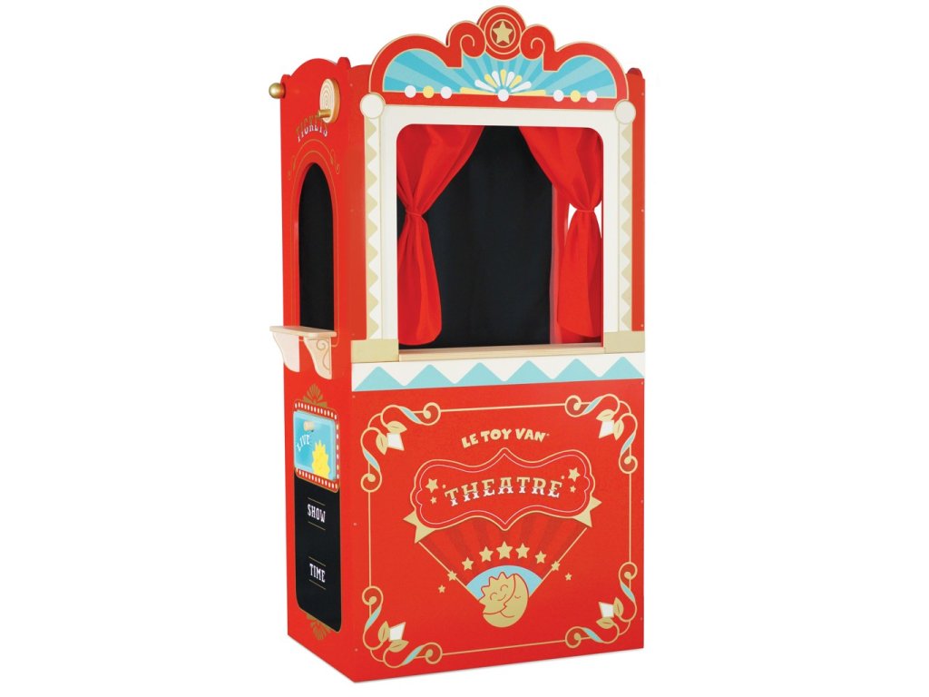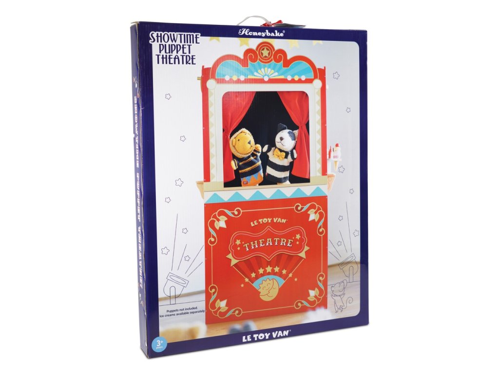 Jeviště je připraveno! Toto krásné retro divadlo má unikátní design a pestrobarevný zevnějšek. Je také vyrobeno z odolného a udržitelného dřeva. Malí herci a herečky si tuto interaktivní hračku jistě zamilují, je realistická a inspiruje k představivé hře. V balení najdete oboustrannou cedulku, dveře na jeviště, dvě tabulky na křídu, na které můžete napsat divadelní program. Pro dramatický efekt byla přidána červená opona a černá zástěna.Divadlo má tři okénka – jeviště, bufet a pokladnu. Děti si s touto hračkou užijí mnoho představivé zábavy. K divadlu se perfektně hodí také popkornovač od Le Toy Van. Hlavní vlastnosti: interaktivní maňáskové divadlotestováno dle nejpřísnějších standardůvyrobeno z udržitelného a odolného dřeva, bez obsahu plastumalováno netoxickými barvami na bázi vodygenderově neutrální designinspiruje ke kreativní a představivé hřepodporuje při raném vývoji Honeybake kolekce: Hračky v této kolekci jsou vhodné k objevování, pomohou dětem s rozvojem představivosti, sociálních a verbálních dovedností a kognitivních funkcí. Tradiční design s moderními detaily děti jistě bude bavit. Honeybake je kolekce Le Toy Van, která vyhrála nejvíce ocenění, a to za design, kvalitu, bezpečnost a také za vzdělávací a herní hodnotu.