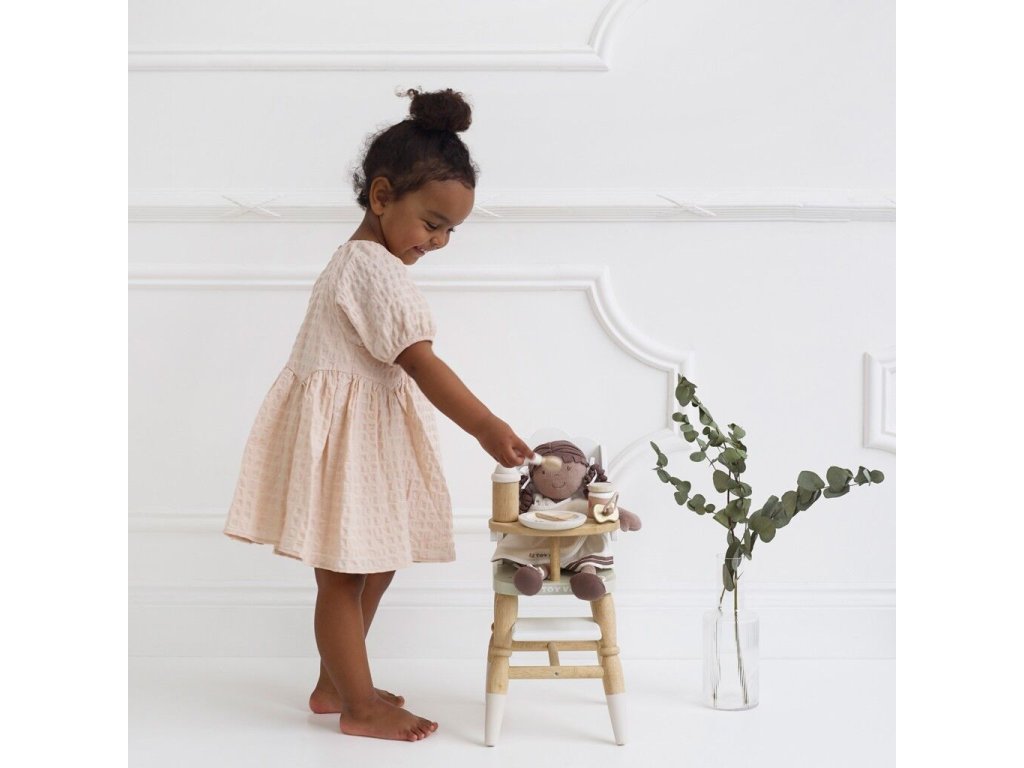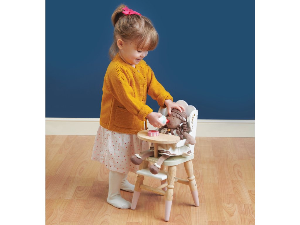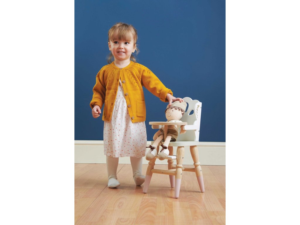 Krásná dřevěná židlička je perfektní pro hru na role! Vhodná pro plyšáky a panenky ve velikosti asi 35 cm, mladé maminky a tatínky inspiruje k představivé hře.Je vyrobena z odolného a udržitelného kaučukového dřeva, nenajdete zde žádný plast, opravdová eko zábava!Židlička má mnoho detailů, ozdobné nohy, designové výřezy v opěrce, zlaté květinové zdobení. Mezi její praktické vybavení patří opěrka na nohy a podnos. Opravdu realistická jídelní židle pro hladové hračky. K židličce se krásně hodí postýlka Sleigh a kočárek Sweet Dreams, které najdete v záložce „příslušenství“. Hračky s účelemVšechny hračky firmy Le Toy Van jsou vyrobeny s cílem – aby dlouho vydržely. Designovány s láskou zkušenými řemeslníky za použití etických praktik a udržitelných materiálů, které jsou laskavější k naší planetě. Hlavní vlastnosti: židlička pro panenkyvhodné pro hračky ve velikosti 30-35 cmvyrobeno eticky z udržitelného dřevaneobsahuje plasttestováno dle nejpřísnějších standardůmalováno netoxickými barvami na bázi vodyinspiruje k představivé hřeasistuje v rozvoji sociálních dovedností a řečipo rozbalení nutno složit dle návodu Ocenění hračky:Good Toy Guide Recommended Honeybake kolekce: Hračky v této kolekci jsou vhodné k objevování, pomohou dětem s rozvojem představivosti, sociálních a verbálních dovedností a kognitivních funkcí. Tradiční design s moderními detaily děti jistě bude bavit. Honeybake je kolekce Le Toy Van, která vyhrála nejvíce ocenění, a to za design, kvalitu, bezpečnost a také za vzdělávací a herní hodnotu.