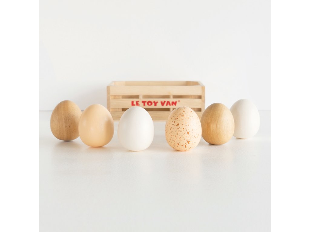 Skvělý doplněk dětských kuchyněk a prodejních stánků, farmářská vejce v bedýnce děti nadchnou k představivé hře. Šest vajec je vyrobeno z pevného kaučukového dřeva, praktická přepravka má otvory na ruce. Děti můžete díky hračce naučit o důležitosti zdravé stravy a rozdílných skupinách potravin. Hračka má velikost perfektní pro malé dětské ruce, pomáhá s rozvojem zručnosti a jemné motoriky. Hodí se k dalším bedýnkám s jídlem od Le Toy Van. Hračky s účelemVšechny hračky firmy Le Toy Van jsou vyrobeny s cílem – aby dlouho vydržely. Designovány s láskou zkušenými řemeslníky za použití etických praktik a udržitelných materiálů, které jsou laskavější k naší planetě. Hlavní vlastnosti: 6 dřevěných vajec, bedýnkavyrobeno eticky z udržitelného dřevatestováno dle nejpřísnějších standardůmalováno netoxickými barvami na bázi vodyinspiruje k představivé hře Honeybake kolekce: Hračky v této kolekci jsou vhodné k objevování, pomohou dětem s rozvojem představivosti, sociálních a verbálních dovedností a kognitivních funkcí. Tradiční design s moderními detaily děti jistě bude bavit. Honeybake je kolekce Le Toy Van, která vyhrála nejvíce ocenění, a to za design, kvalitu, bezpečnost a také za vzdělávací a herní hodnotu.