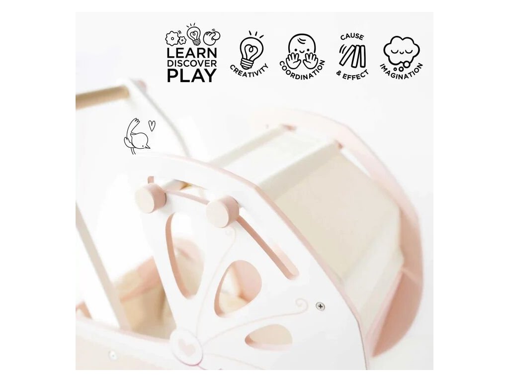 Povozte panenku v krásném tradičním kočárku! Roztomilý design, krásné detaily ve formě srdíček a krajek. Kočárek v pastelově růžové, krémové a bílé barvě má silnou strukturu, měkkou matraci a jedinečný baldachýn, který je ručně šitý a zatažitelný. Stylová jízda pro všechny druhy panenek! Hračka je vyrobena z kvalitních materiálů, kolečka z přírodního kaučuku jsou pogumována, jízda po koberci i tvrdé podlaze tak bude hladká. Nechybí ani samostatná roztomilá přebalovací taška. Perfektní hračka, kterou si můžete předávat z generace na generaci. Hračky s účelemVšechny hračky firmy Le Toy Van jsou vyrobeny s cílem – aby dlouho vydržely. Designovány s láskou zkušenými řemeslníky za použití etických praktik a udržitelných materiálů, které jsou laskavější k naší planetě. Hlavní vlastnosti: vyrobeno eticky z udržitelného dřevatestováno dle nejpřísnějších standardůmalováno netoxickými barvami na bázi vodyinspiruje k představivé hřerozvíjí kognitivní dovednostivhodné pro panenky a plyšáky ve velikosti 30-35 cm Ocenění hračky:Loved By Parents Shortlisted Award 2018 Honeybake kolekce: Hračky v této kolekci jsou vhodné k objevování, pomohou dětem s rozvojem představivosti, sociálních a verbálních dovedností a kognitivních funkcí. Tradiční design s moderními detaily děti jistě bude bavit. Honeybake je kolekce Le Toy Van, která vyhrála nejvíce ocenění, a to za design, kvalitu, bezpečnost a také za vzdělávací a herní hodnotu. Značka a certifikát FSC® (Forest Stewardship Council) zaručuje, že dřevo, ze kterého byl produkt vyroben, nebylo vytěženo nelegálně a pochází z lesů obhospodařovaných šetrným či přírodě blízkým způsobem, ve kterém jsou dodržovány přísné environmentální a sociální požadavky. Značka FSC® na výrobku znamená, že svým nákupem pomáháte chránit lesy a podporujete šetrné, odpovědné či přírodě blízké hospodaření, díky kterému jsou naše lesy stabilnější, zdravější, mají přirozenou druhovou skladbu a lépe odolávají negativním následkům klimatických změn.