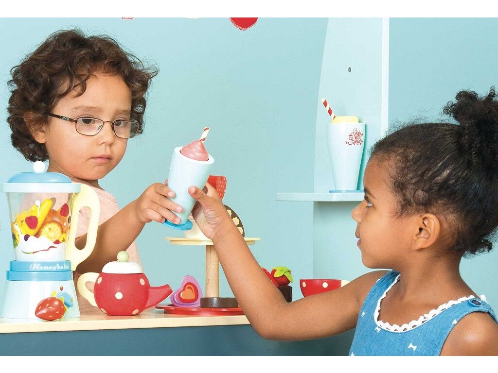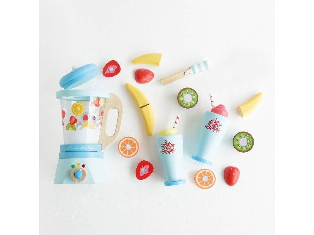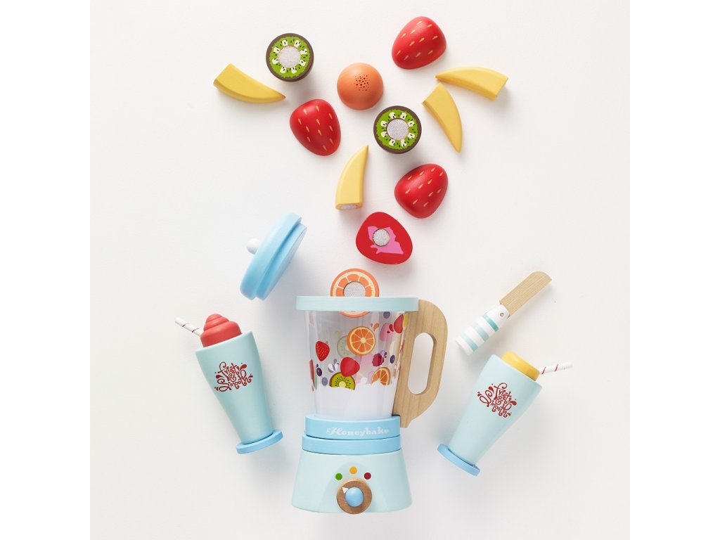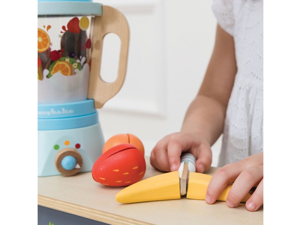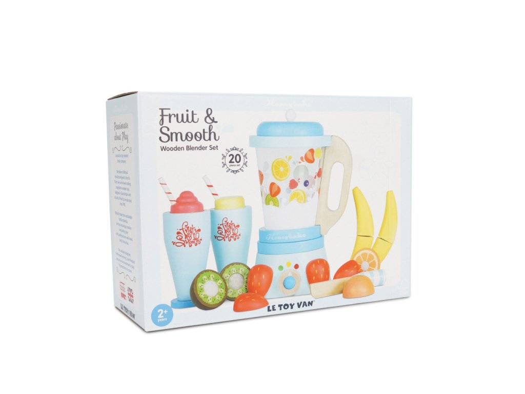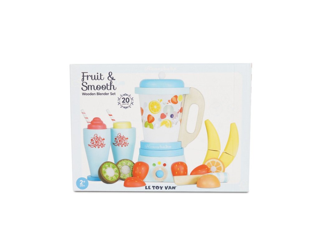 Umixujte si svou denní dávku ovoce! Interaktivní dřevěná sada se bude hodit do každé dětské kuchyňky. Klasický mixér s oddělitelnou nádobou, nechybí šest kusů krájecího ovoce na suchý zip, dřevěný nožík a dvě sklenice s brčky a zdobením. Hračka vyhrála ocenění. Hračky s účelemVšechny hračky firmy Le Toy Van jsou vyrobeny s cílem – aby dlouho vydržely. Designovány s láskou zkušenými řemeslníky za použití etických praktik a udržitelných materiálů, které jsou laskavější k naší planetě. Hlavní vlastnosti: vyrobeno eticky z udržitelného dřevatestováno dle nejpřísnějších standardůmalováno netoxickými barvami na bázi vodyinspiruje k představivé hřerozvíjí kognitivní dovednosti Ocenění hračky:Independent Toy Best Role Play Silver Award Honeybake kolekce: Hračky v této kolekci jsou vhodné k objevování, pomohou dětem s rozvojem představivosti, sociálních a verbálních dovedností a kognitivních funkcí. Tradiční design s moderními detaily děti jistě bude bavit. Honeybake je kolekce Le Toy Van, která vyhrála nejvíce ocenění, a to za design, kvalitu, bezpečnost a také za vzdělávací a herní hodnotu. Značka a certifikát FSC® (Forest Stewardship Council) zaručuje, že dřevo, ze kterého byl produkt vyroben, nebylo vytěženo nelegálně a pochází z lesů obhospodařovaných šetrným či přírodě blízkým způsobem, ve kterém jsou dodržovány přísné environmentální a sociální požadavky. Značka FSC® na výrobku znamená, že svým nákupem pomáháte chránit lesy a podporujete šetrné, odpovědné či přírodě blízké hospodaření, díky kterému jsou naše lesy stabilnější, zdravější, mají přirozenou druhovou skladbu a lépe odolávají negativním následkům klimatických změn.