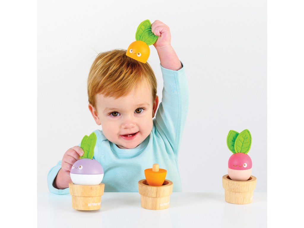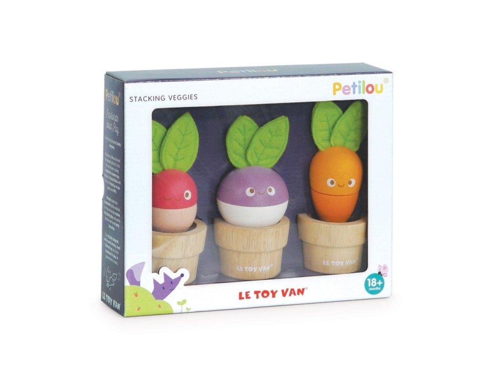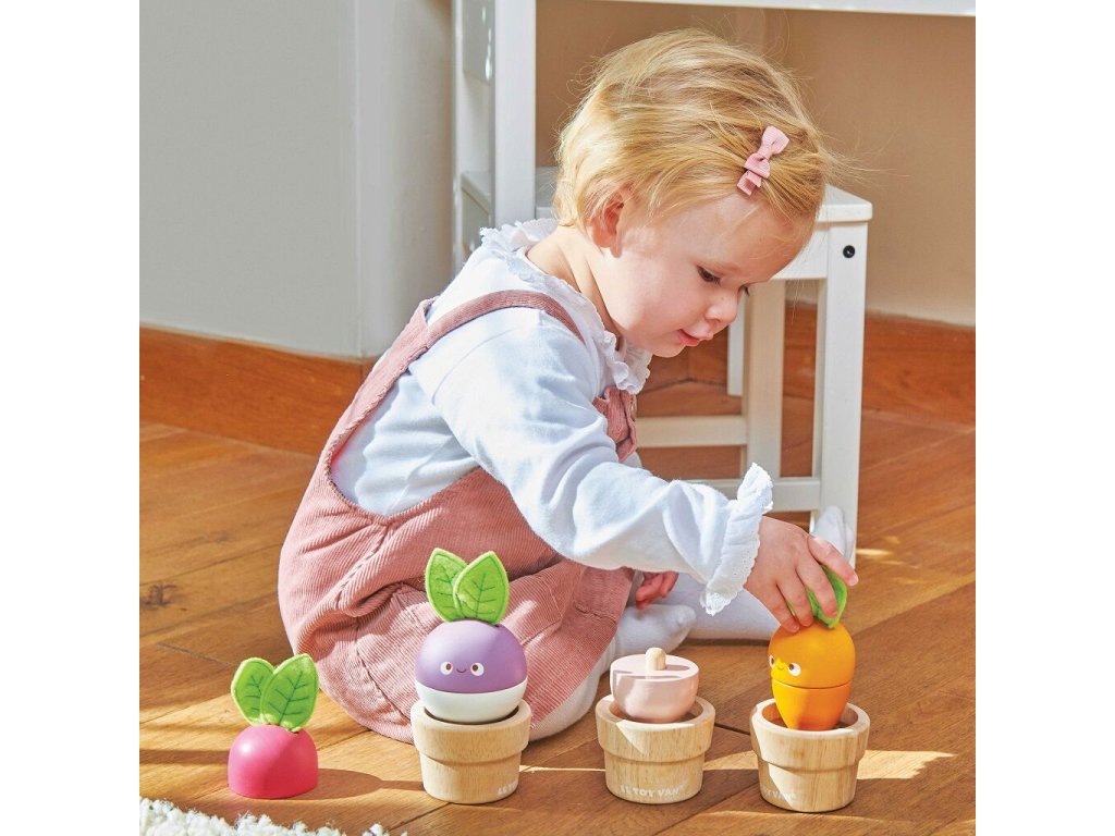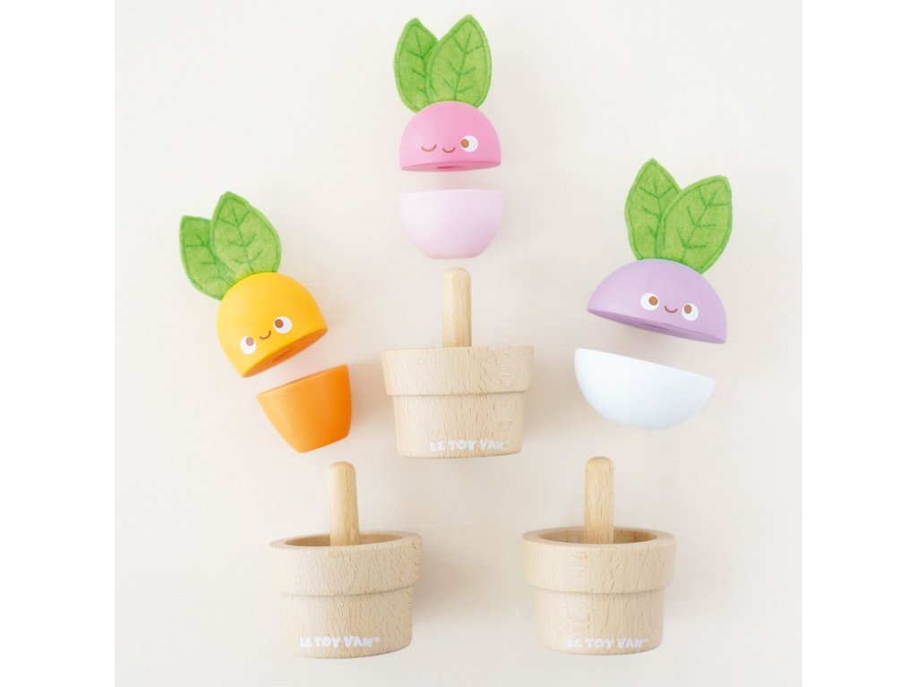 Zelenina je důležitá! Mladí zahrádkáři nebo milovníci přírody si tuto hračku o 6 dílech jistě oblíbí. Mohou mixovat jednotlivé dílky a vytvořit v květináčku úplně nový typ zeleniny nebo se držet předlohy a poskládat mrkev, ředkev a řepu. Vzdělávací hračka má velikost tak akorát pro dětské ruce. Je zábavná a univerzální, děti si s ní procvičí jemnou motoriku, zručnost a představivost. Hračka je vyrobená z odolného a udržitelného kaučukového dřeva, malována barvami na bázi vody. Nechybí ani ručně šité plstěné lístky. Hračky s účelemVšechny hračky firmy Le Toy Van jsou vyrobeny s cílem – aby dlouho vydržely. Designovány s láskou zkušenými řemeslníky za použití etických praktik a udržitelných materiálů, které jsou laskavější k naší planetě. Hlavní vlastnosti: vyrobeno eticky z udržitelného dřevatestováno dle nejpřísnějších standardůmalováno netoxickými barvami na bázi vodyinspiruje k představivé hřerozvíjí koordinaci ruka-okomultisenzorická hračka Petilou kolekce: Kolekce pro nemluvňata a batolata od Le Toy Van obsahuje hlavně hmatové hračky, které mají nejmenším posloužit také jako učební prostředky. Kolekce je inspirována přírodou kolem nás a je navržena tak, aby rozvíjela smysly dětí pomocí rozdílných zvuků, textur, tvarů a hmotností. Děti tak od malička zapojí všechny své smysly. V kolekci najdete například skládačky, vkládačky, chodítka, …