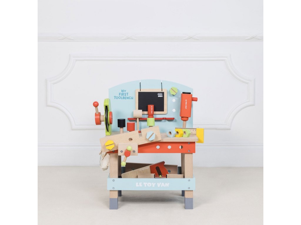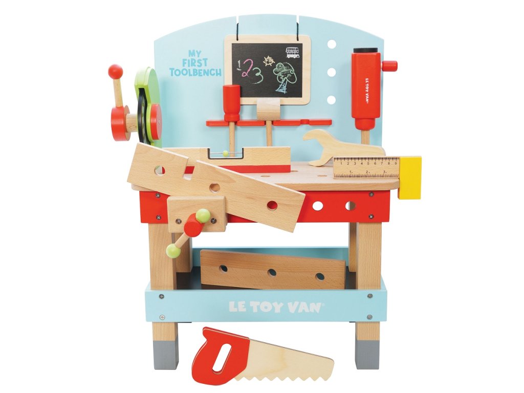 Připravte se na kutilskou zábavu s tímto dřevěným ponkem s nářadím. Obsáhlý set děti naučí mnoho o práci v dílně a manuální zručnosti. Ponk i doplňky jsou vyrobeny z pevného dřeva, vydrží vám opravdu dlouho. Mezi výbavou najdete vrtačku, cirkulárku, svěrák, pilu, kladivo, šroubovák, vodováhu, pravoúhlé pravítko, klíč a tabulku na křídu. Děti si při hraní na role užijí mnoho zábavy. Ponk má vespod polici, která slouží jako úložný prostor. Do dvou perforovaných dřevěných destiček mohou našroubovat šrouby i s matkami. Hračky s účelemVšechny hračky firmy Le Toy Van jsou vyrobeny s cílem – aby dlouho vydržely. Designovány s láskou zkušenými řemeslníky za použití etických praktik a udržitelných materiálů, které jsou laskavější k naší planetě. Hlavní vlastnosti: vyrobeno eticky z udržitelného FSC dřevatestováno dle nejpřísnějších standardůmalováno netoxickými barvami na bázi vodyinspiruje k představivé hřerozvíjí kognitivní dovednosti Ocenění hračky:Good Toy Guide Approved Auta & stavby: Stavební a motorická kolekce Le Toy Van, která vyhrála mnoho ocenění. Přesněji prozatím přes 15 ocenění za představivá auta a stavební hračky. Podporují dětskou fantazii, jsou ideální k představivé hře, rozvíjí kreativitu a hravě zlepšují dětskou koordinaci ruka‑oko. Značka a certifikát FSC® (Forest Stewardship Council) zaručuje, že dřevo, ze kterého byl produkt vyroben, nebylo vytěženo nelegálně a pochází z lesů obhospodařovaných šetrným či přírodě blízkým způsobem, ve kterém jsou dodržovány přísné environmentální a sociální požadavky. Značka FSC® na výrobku znamená, že svým nákupem pomáháte chránit lesy a podporujete šetrné, odpovědné či přírodě blízké hospodaření, díky kterému jsou naše lesy stabilnější, zdravější, mají přirozenou druhovou skladbu a lépe odolávají negativním následkům klimatických změn.