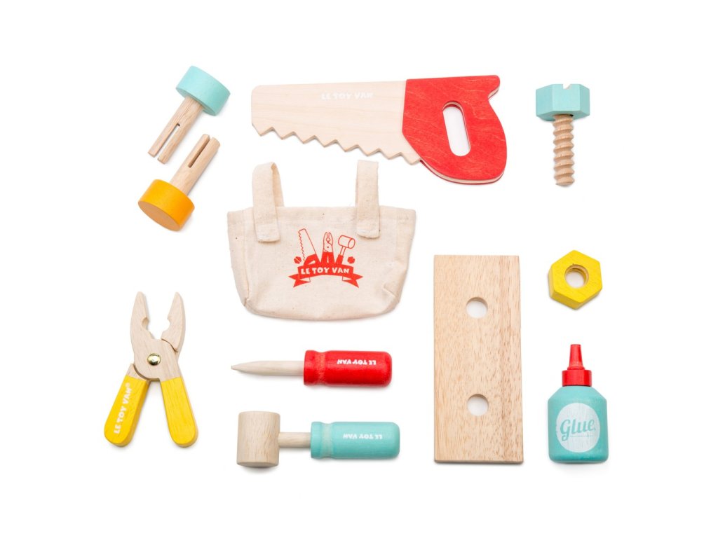 Zabavte mladou mysl a ruce s touto tradiční hračkou. Dřevěné nářadí v bedýnce pro kluky i holky je perfektní pro trénink motoriky během představivé hry. V balení najdete bedýnku, textilní tašku, kombinačky, šroubovák, perforovanou destičku, dva hřebíky, šroub s maticí, dřevěné lepidlo a kladivo. Vyrobeno z udržitelného dřeva, malováno netoxickými barvami na bázi vody. Hračky s účelemVšechny hračky firmy Le Toy Van jsou vyrobeny s cílem – aby dlouho vydržely. Designovány s láskou zkušenými řemeslníky za použití etických praktik a udržitelných materiálů, které jsou laskavější k naší planetě. Hlavní vlastnosti: vyrobeno eticky z udržitelného dřevatestováno dle nejpřísnějších standardůmalováno netoxickými barvami na bázi vodyinspiruje k představivé hřerozvíjí kognitivní dovednosti Ocenění hračky:Junior Design Awards Shortlist 2018Good Toy Guide Recommended Auta & stavby: Stavební a motorická kolekce Le Toy Van, která vyhrála mnoho ocenění. Přesněji prozatím přes 15 ocenění za představivá auta a stavební hračky. Podporují dětskou fantazii, jsou ideální k představivé hře, rozvíjí kreativitu a hravě zlepšují dětskou koordinaci ruka‑oko.